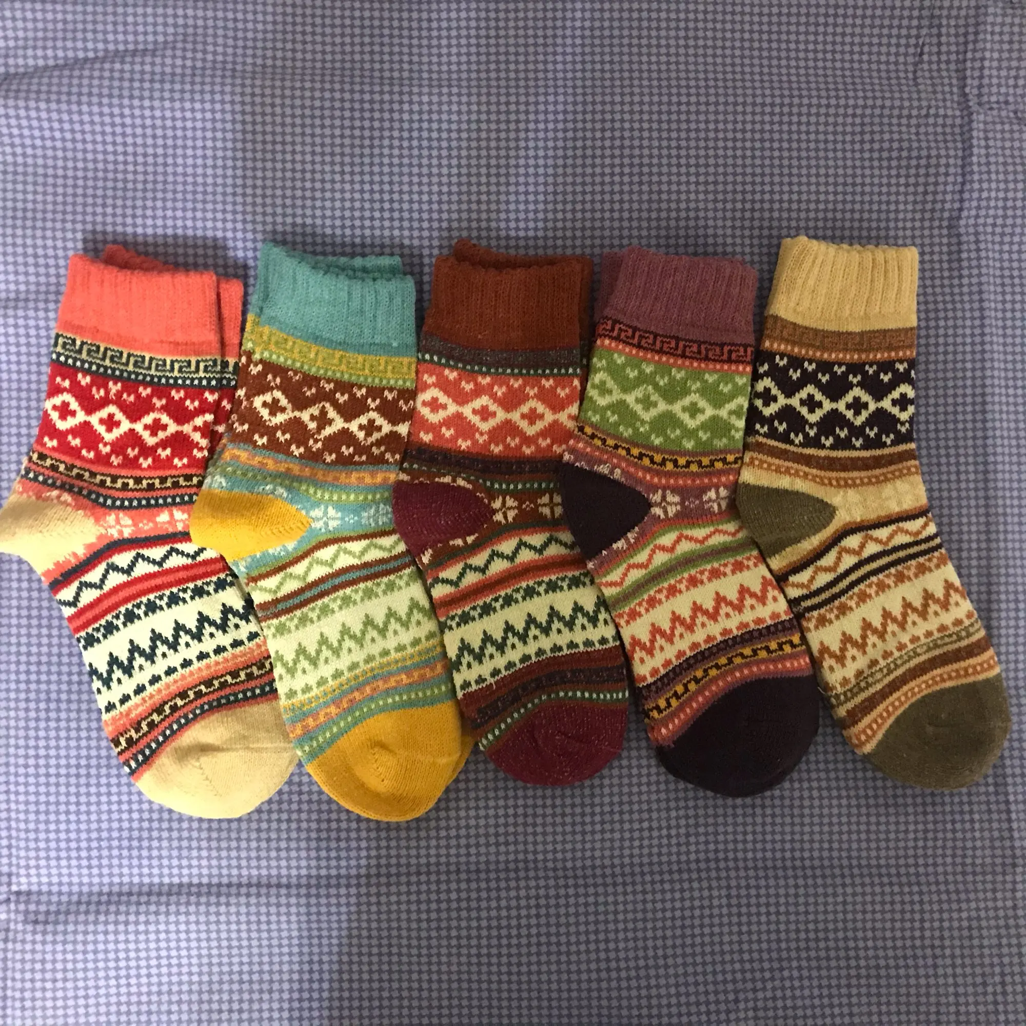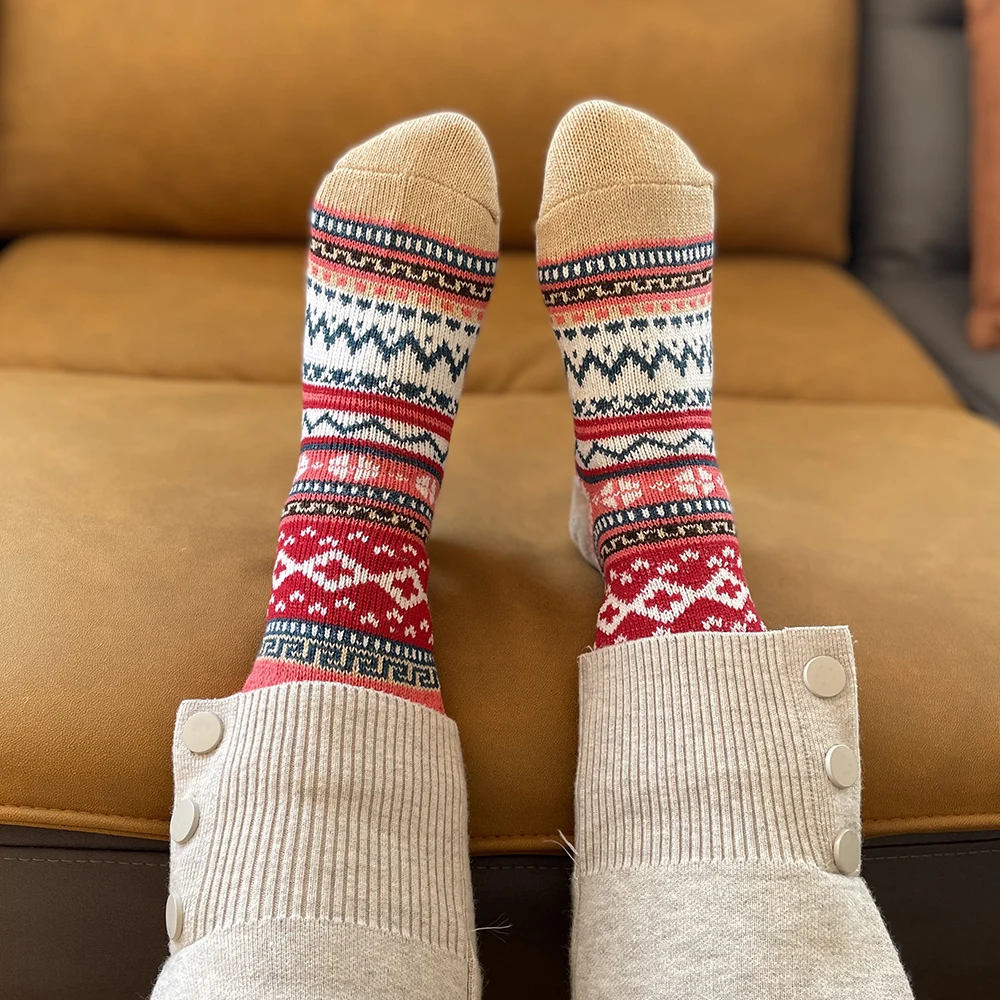 Носки теплые, винтажные, разноцветные, YM7020, 5 парлот, женские шерстяные носки