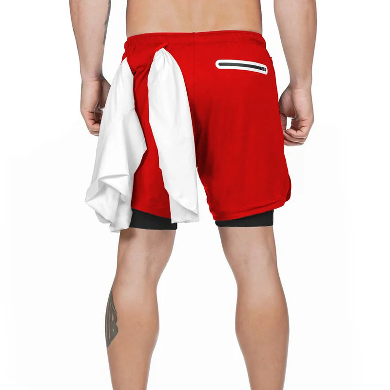 Шорты мужские для бега 2 в 1, спортивные быстросохнущие двухслойные...