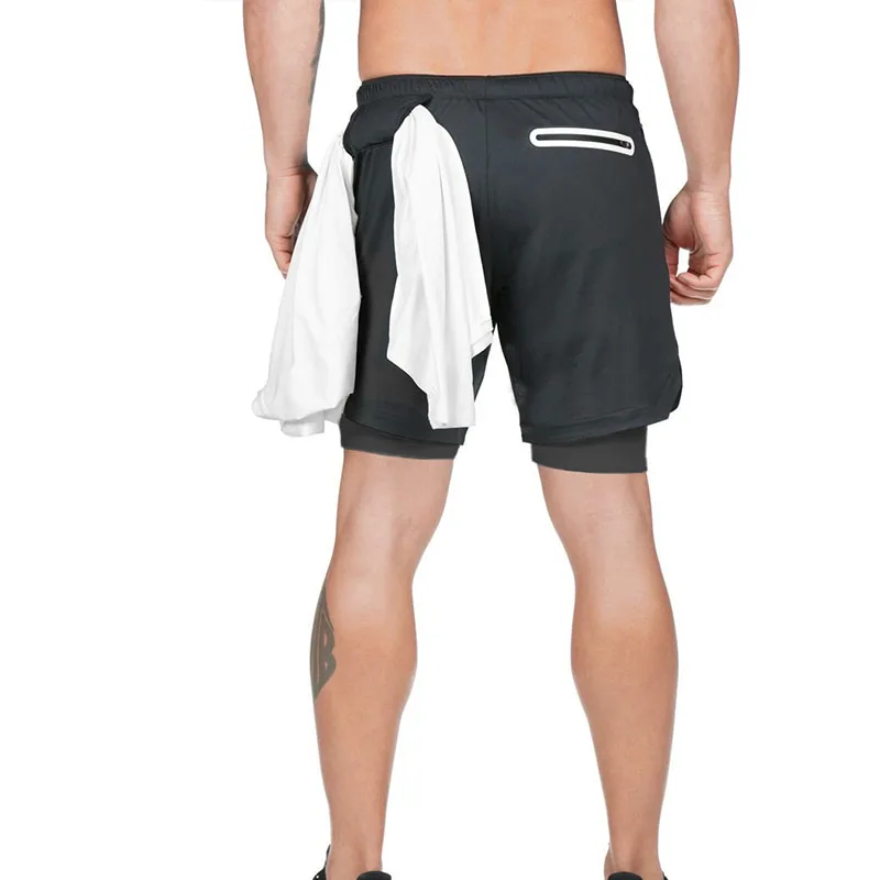 Шорты мужские спортивные быстросохнущие для бега и фитнеса, 2 в 1
