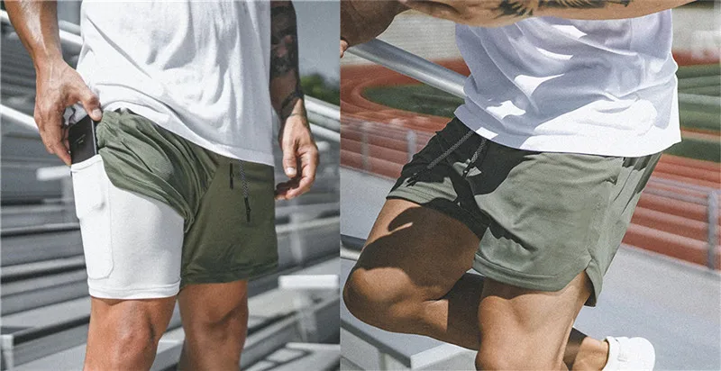 лето бриджи шорты мужские одежда сухой бассейн Мужские повседневные шорты 2 в 1, шорты для бега, быстросохнущие спортивные шорты для спортзала, фитнеса, бодибилдинга, тренировки, встроенные карманы, короткие мужские