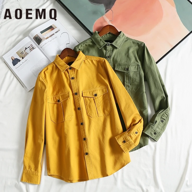 Куртка AOEMQ в Корейском стиле, однобортная, на пуговицах, желтогозеленого цвета, унисекс, для взрослых, верхняя одежда, кардиган, одежда