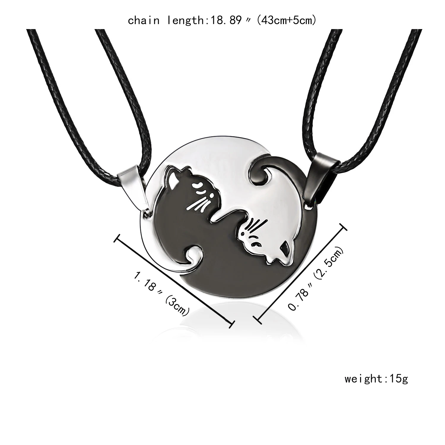 Rinhoo, 1 пара, ожерелье из нержавеющей стали с подвеской в виде кота влюбленного сердца, круглое ожерелье Инь-Янь, модные ювелирные украшения, подарок унисекс