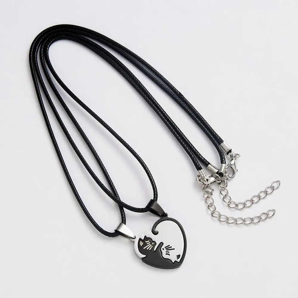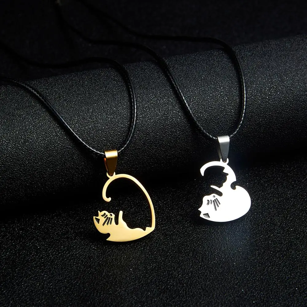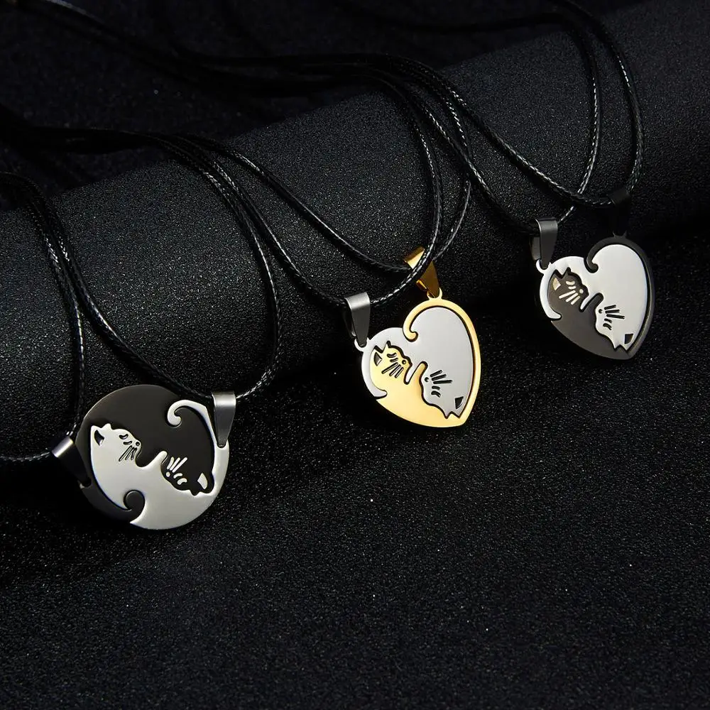Rinhoo 1 пара, ожерелье для влюбленных котов, из нержавеющей стали, с сердечком, Круглый Инь Ян, ожерелье, модное ювелирное изделие, унисекс, подарок