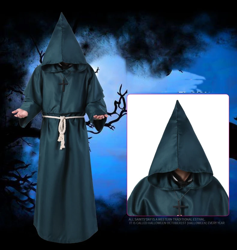 Костюм волшебника для косплея на Хэллоуин, средневековый монах, фриарский халат костюм священника, старинная одежда, христианский костюм