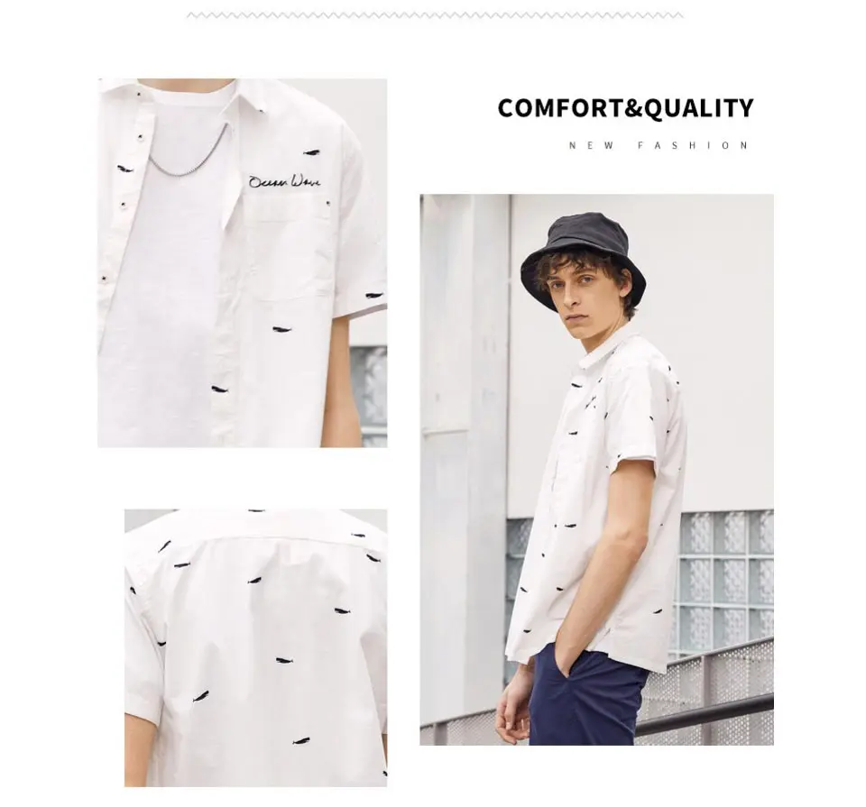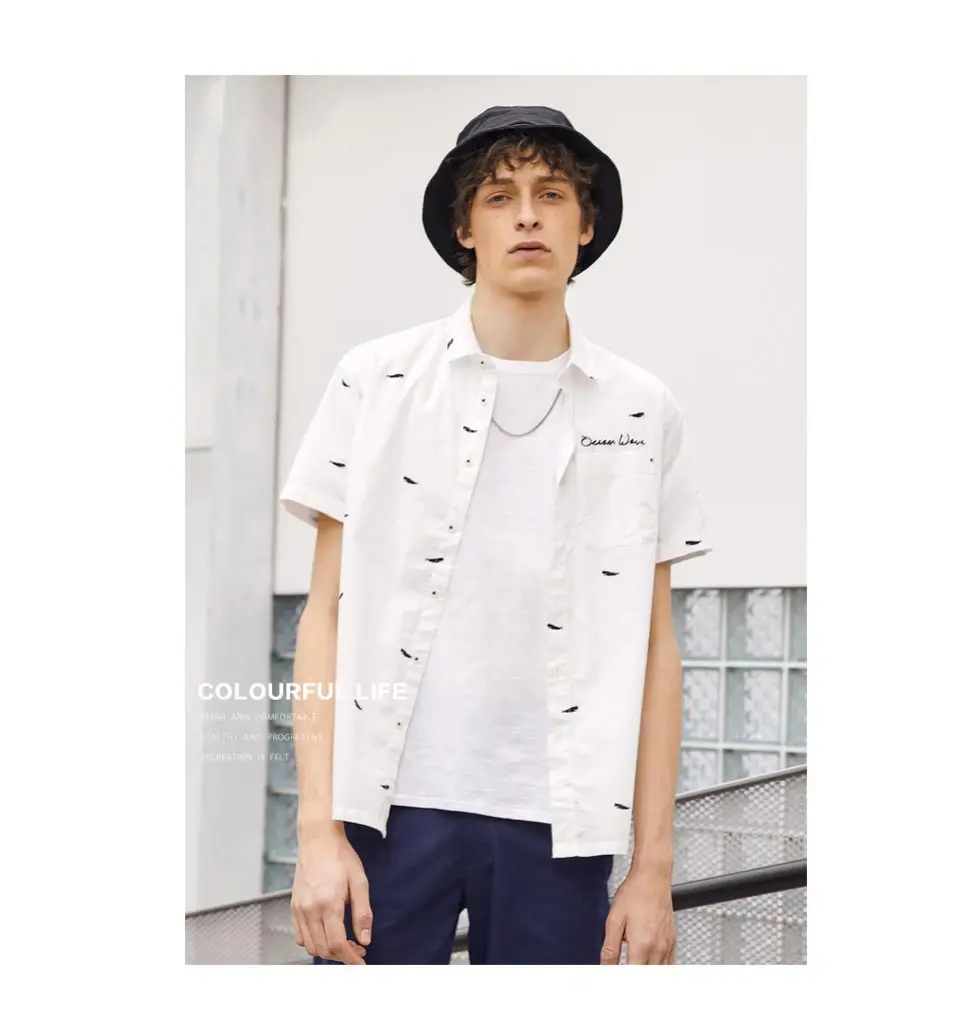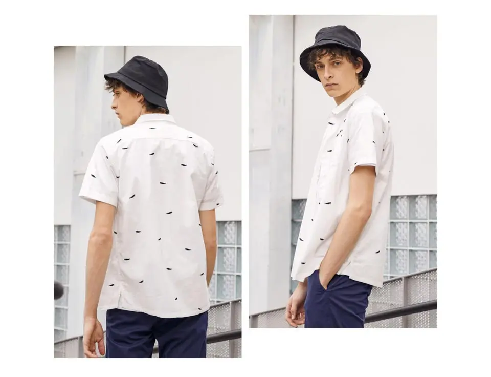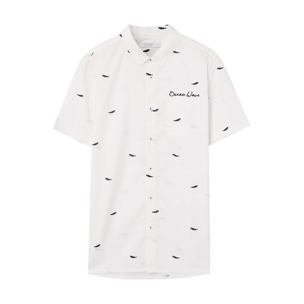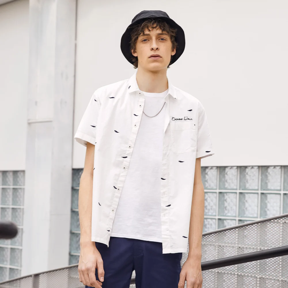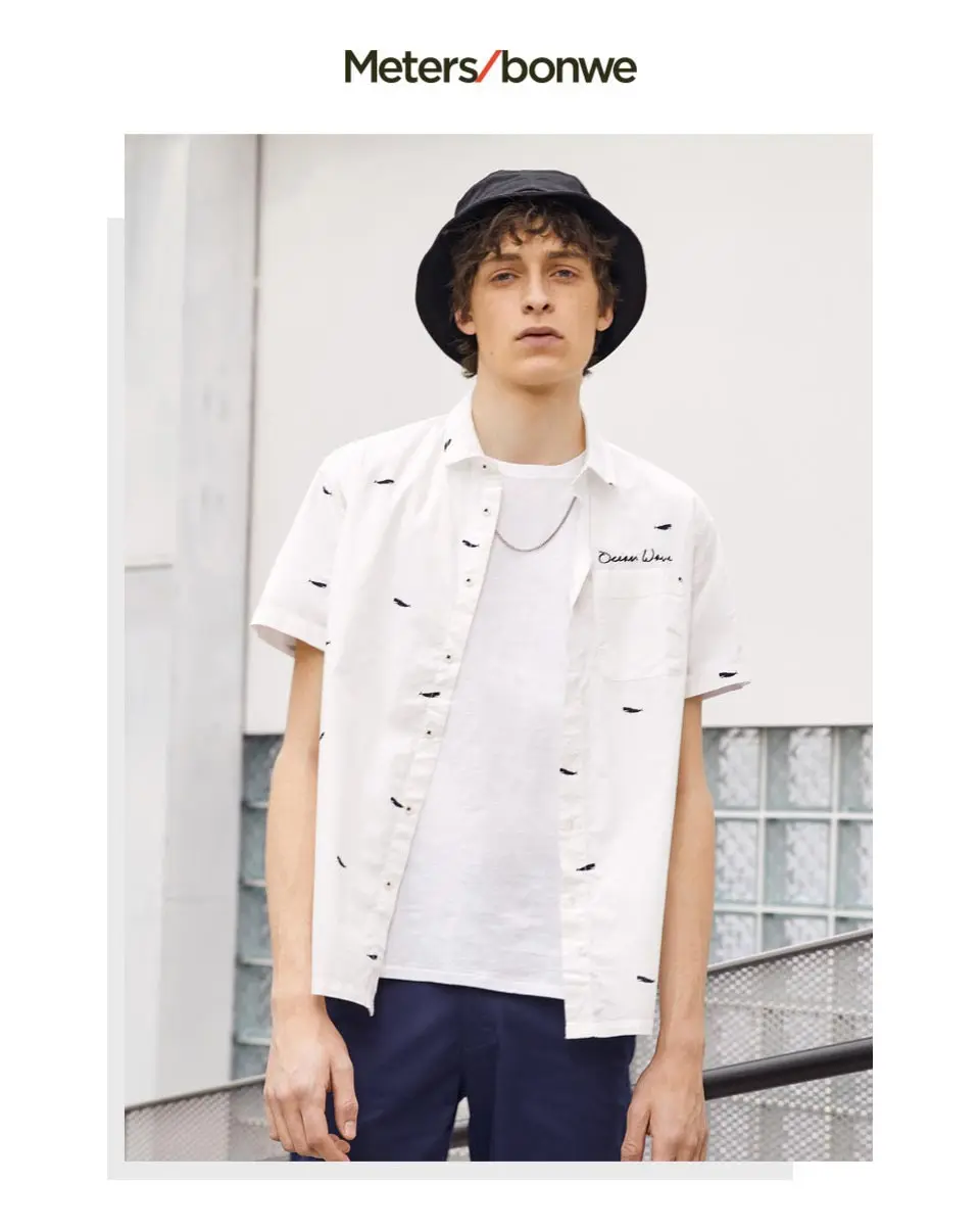 Metersbonwe Мужская рубашка с коротким рукавом, Мужская умная Повседневная хлопковая рубашка, новый тренд, летняя рубашка с принтом лодки, Повседневная рубашка
