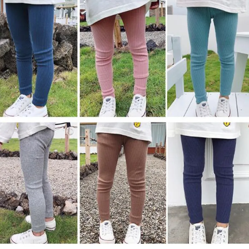 Весенняя одежда для маленьких девочек 2021, Детские однотонные облегающие брюки, эластичные леггинсы для девочек, модные леггинсы в рубчик для девочек, 7 цветов