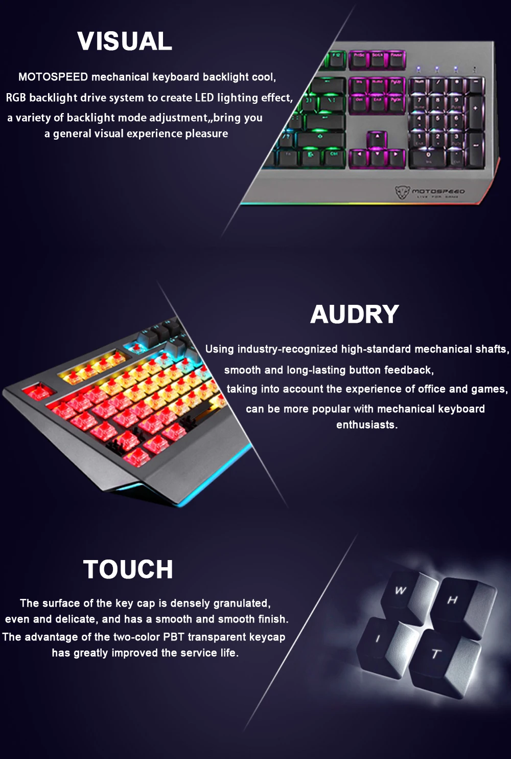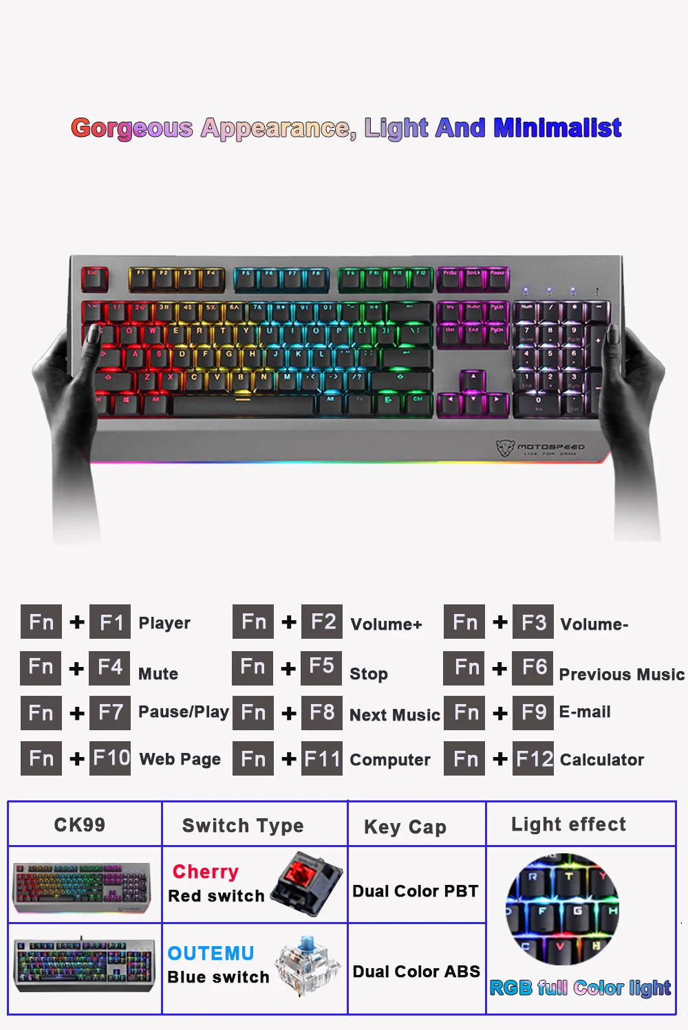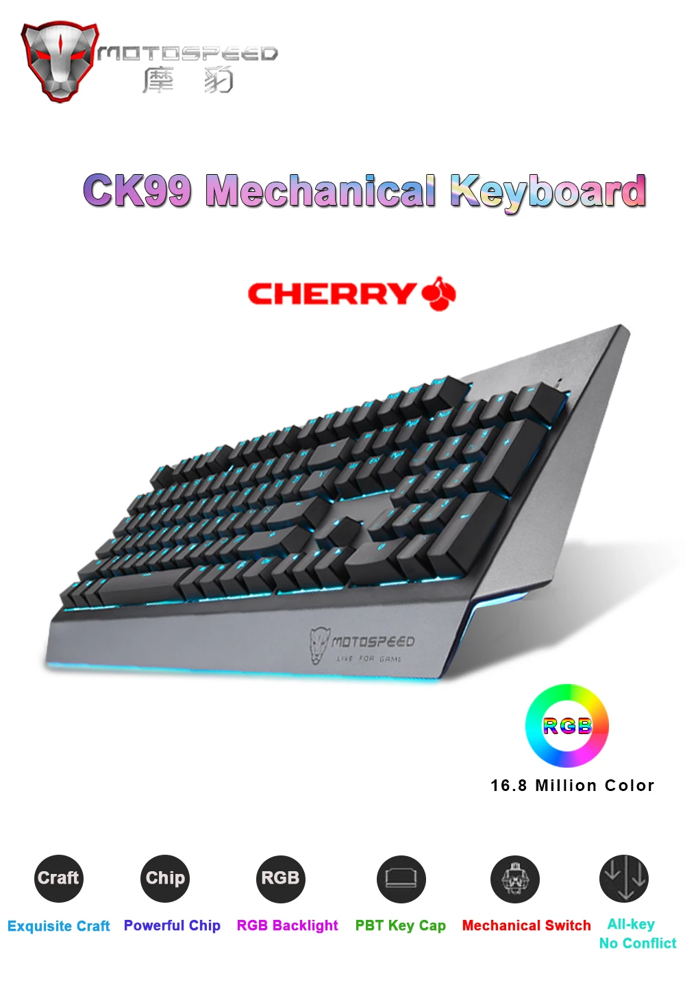 Оригинальная игровая механическая клавиатура MOTOSPEED CK99, вишневый красный переключатель, 104 клавиш, RGB подсветка, USB Проводная клавиатура для любителей компьютерных игр