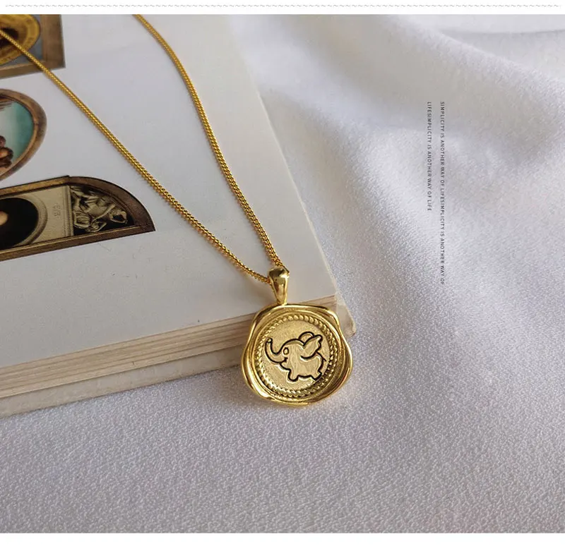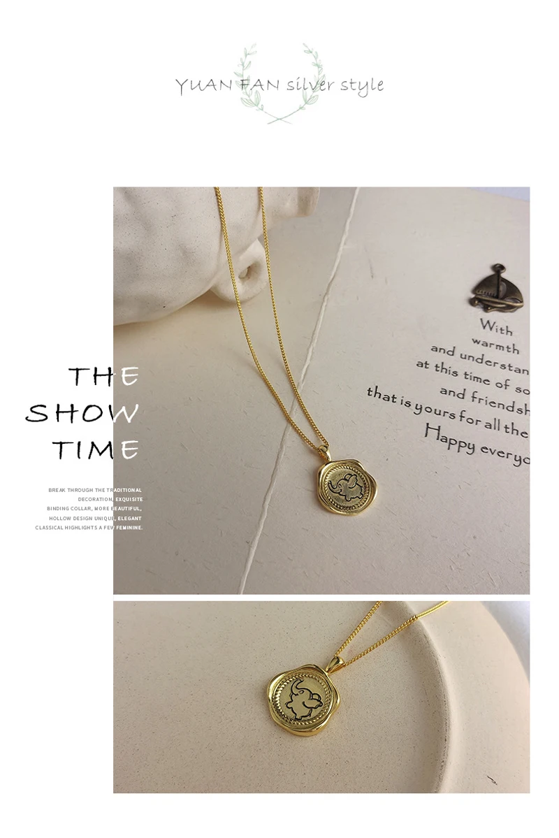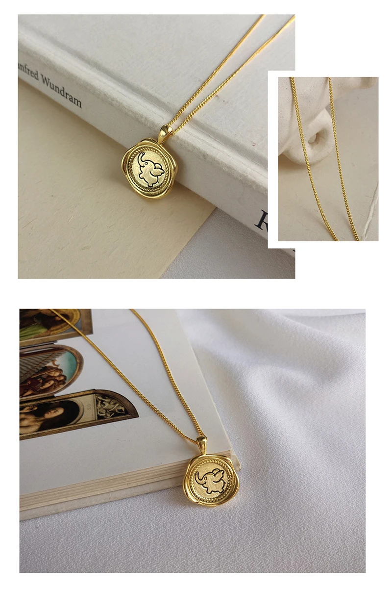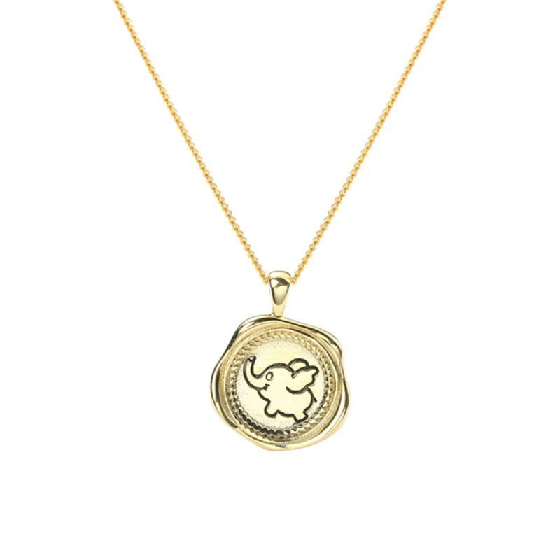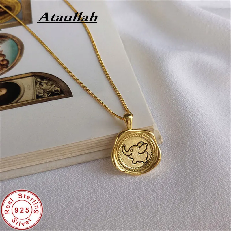 Ataullah стерлингового серебра 925 ювелирных изделий ожерелье кулон покрытый розовым золотом 18K золотой милый чехол с откидной крышкой с изображением слона из мультфильма круглый значок женское ожерелье, NW084