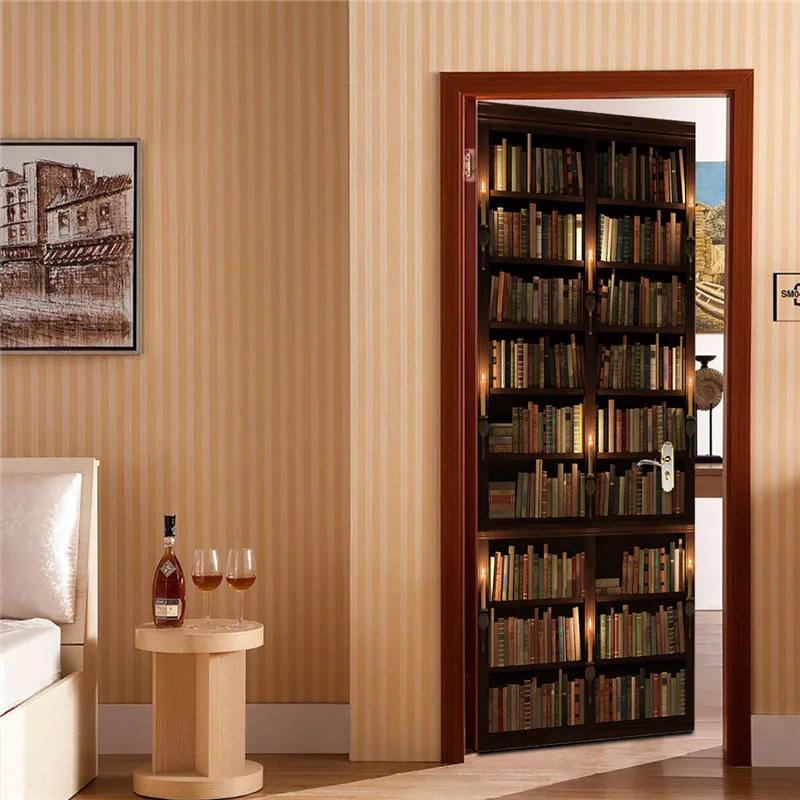 2 шт.компл. библиотека, 3D клейкие дверные обои, водонепроницаемая наклейка, сделай сам, домашний декор, гостиная, настенные Переводные картинки, книга океана, постер