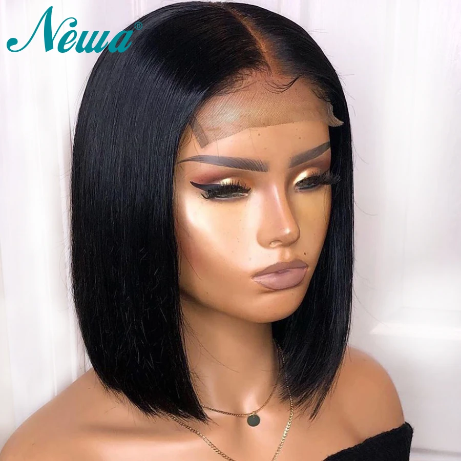 Бразильский парик, прямые короткие фронтальные парики на сетке, парики без повреждений, 13x6, фронтальные человеческие волосы на сетке, предварительно выщипанные Детские волосы, Newa Hair
