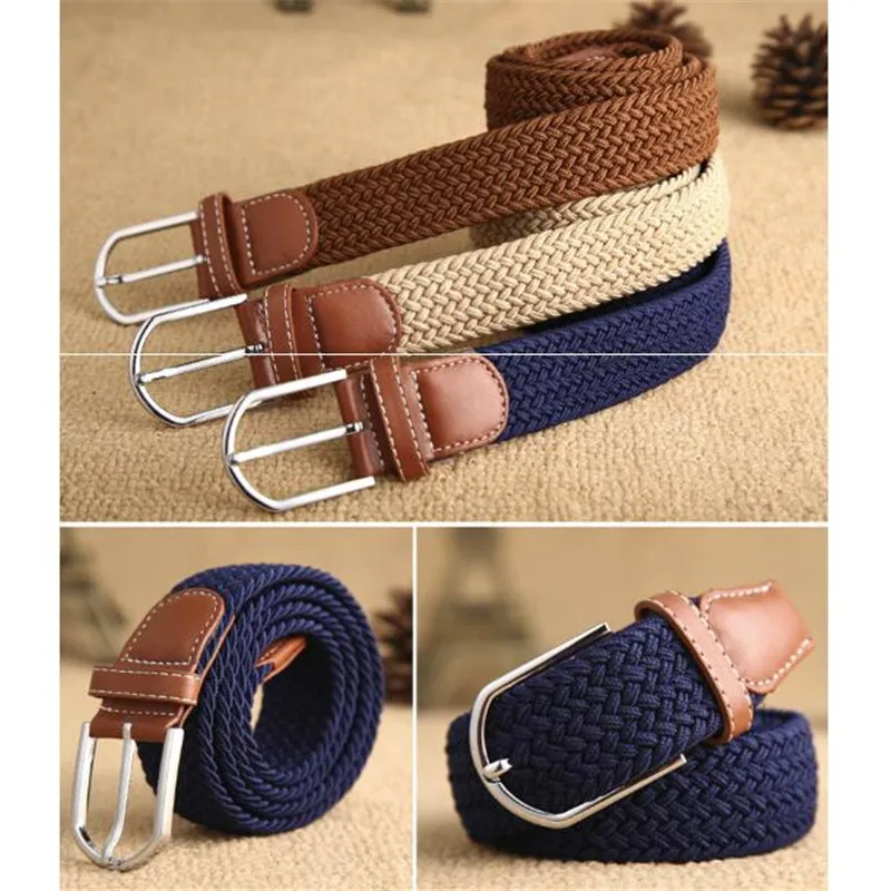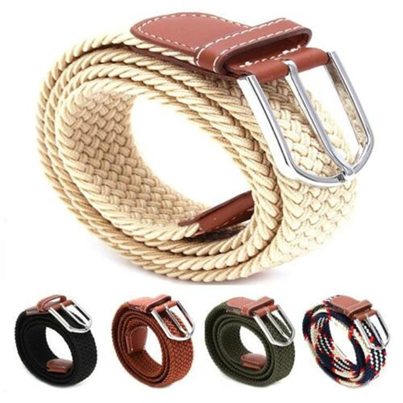 Горячие цвета для мужчин и женщин, повседневный вязаный ремень с пряжкой, тканый, эластичный, эластичный ремень, простая тесьма, мода 2020, 105-110 см