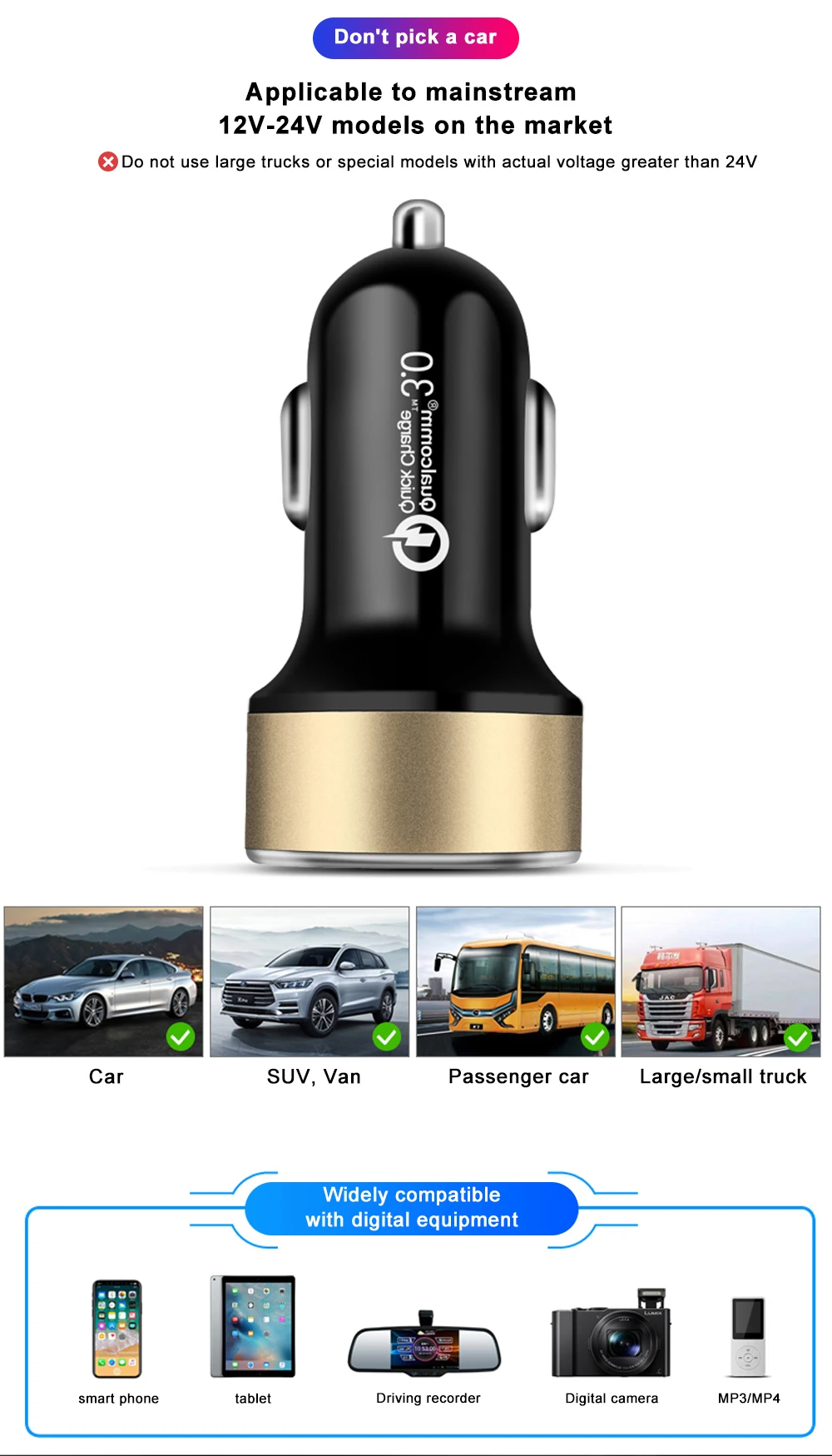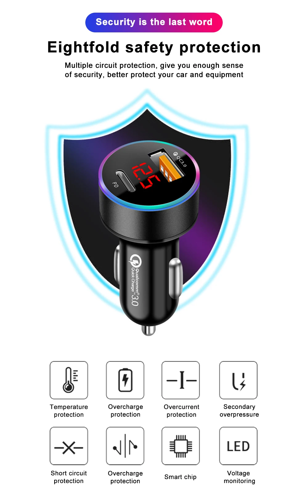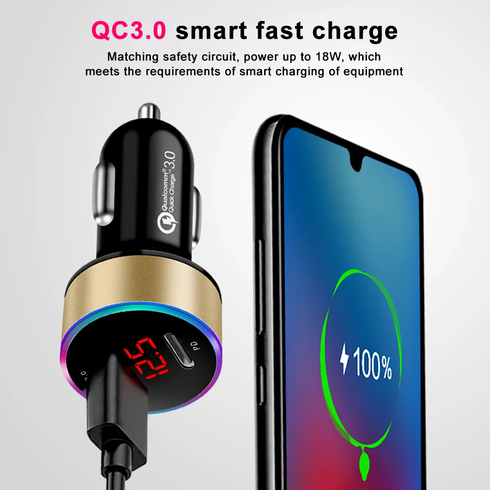 Универсальное автомобильное зарядное устройство QC 3,0 PD с двумя USB-портами для Huawei P10 Plus Mate 9, зарядное устройство для Xiaomi Mi5 Mi6 Plus со светодиодным дисплеем напряжения