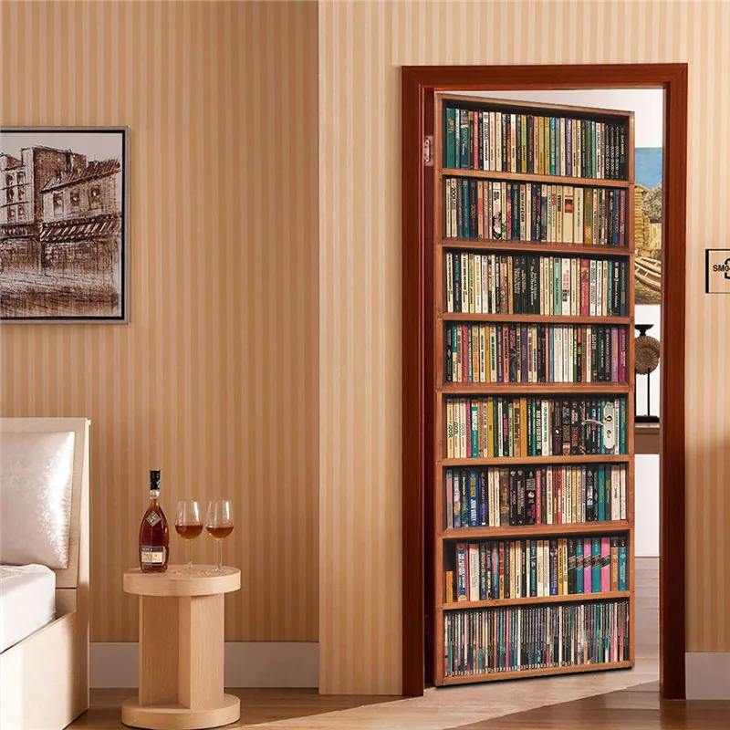 2 шт.компл. ретро-библиотека, 3D клейкие дверные обои, водонепроницаемые, домашний декор, наклейка для гостиной, фотоальбом океана, постер