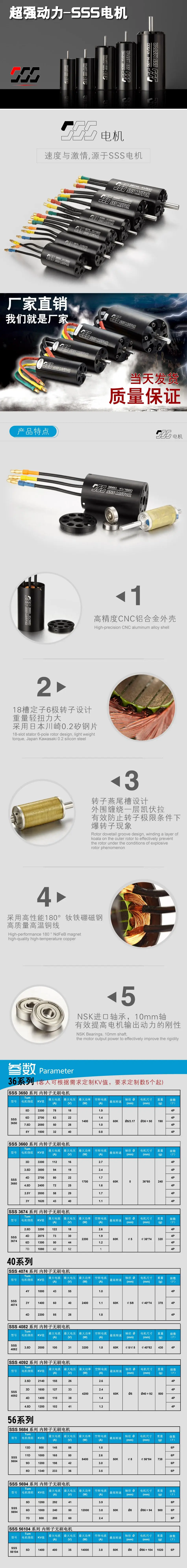 Бесщеточный внутренний двигатель ротора SSS 3650 KV1500 KV2700 с водяным охлаждением для электролодки с дистанционным управлением
