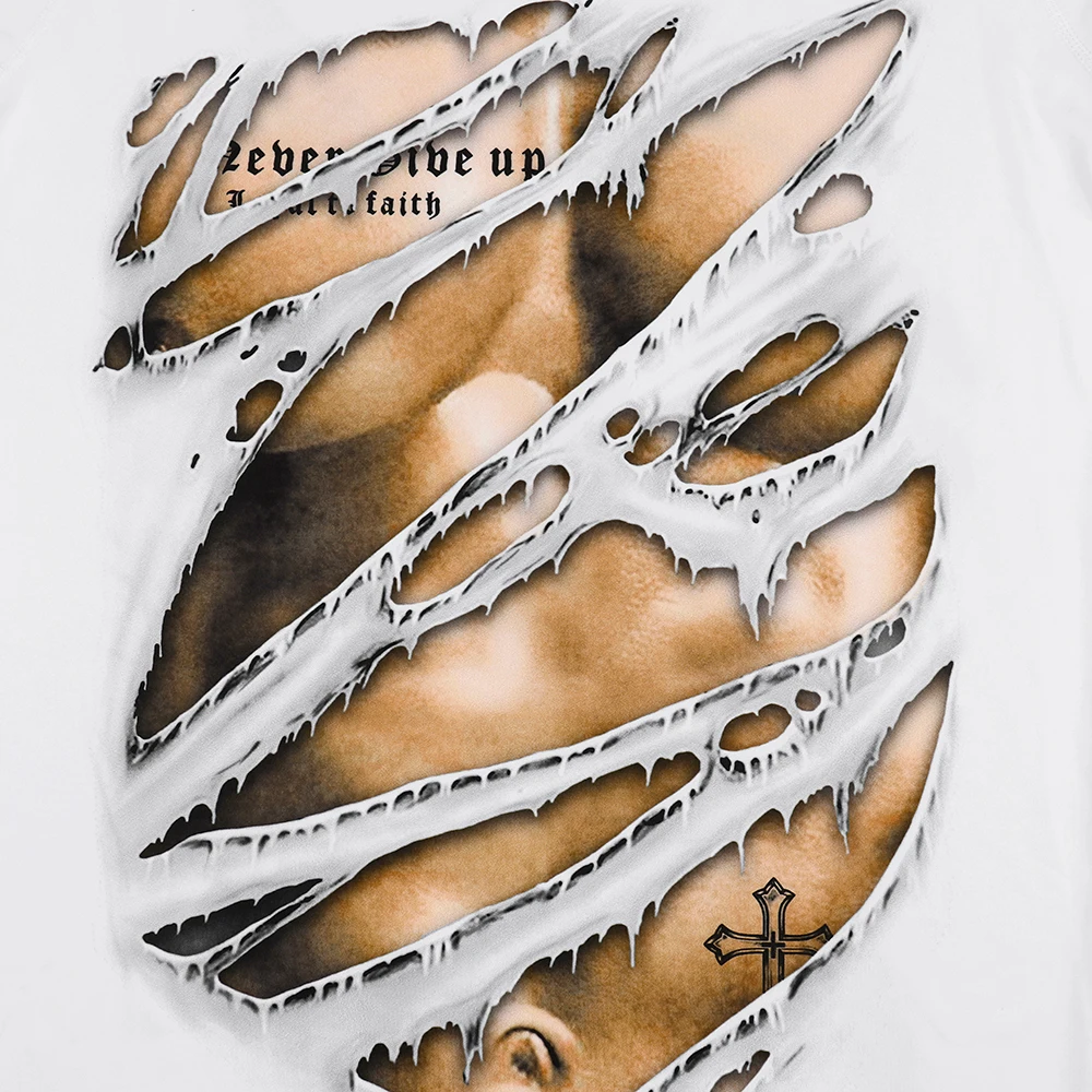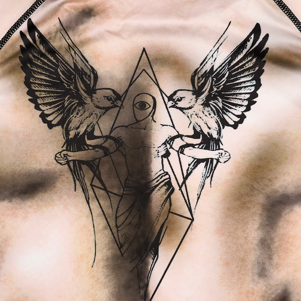 Идея дизайна забавная, даже если она украдена у кого-то другого реального дизайна татуировки. Качество футболки хорошее, хотя я настоятельно рекомендую заказать меньший размер. Основной вопрос-принт. Это совсем не выглядит реальным. Выглядит хорошо на картинке, но не на самом деле .... На футболке выглядит просто беспорядок. LOL Если вы думаете о покупке, я не буду рекомендовать его купить.