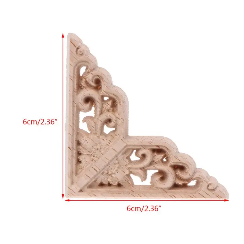 4 шт.компл. деревянная резная угловая наклейка Onlay, Неокрашенная рама, наклейка для украшения мебели, 6x6 см