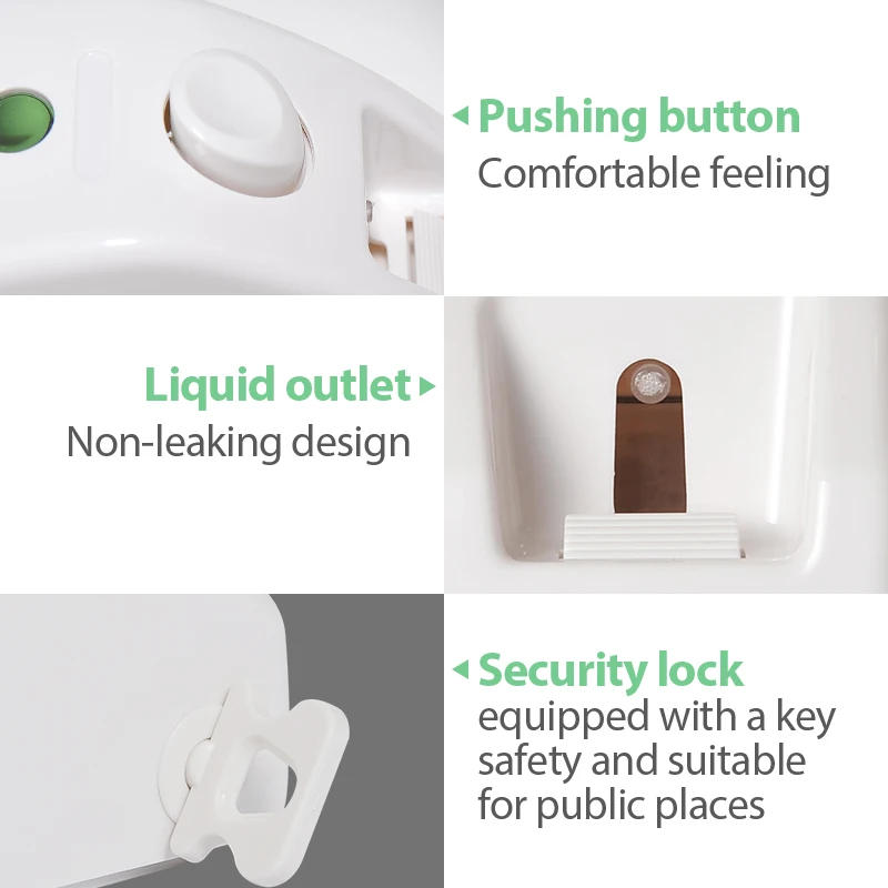 -Настенный-Простая установка и экономия места, устраняет беспорядок в душевых бутылках, полках, кухонной раковине или умывальнике. -Выпускное отверстие для жидкости-не протекает, полностью отключает поток мыла. Защита от капель и без следов. -Емкость 400 мл * 2-четко просматривается дозировка на видимом окне и вовремя наполняется, может содержать 400 мл * 2 жидкости за один раз. -Прочный материал-изготовлен из экологически чистого АБС-пластика, имеет длительную работу с использованием высококачественного водонепроницаемого АБС-пластика. -Рекомендуется использовать-подходит для ванных комнат, кухонь, офисов, больниц, отелей, ресторанов и других общественных мест.
