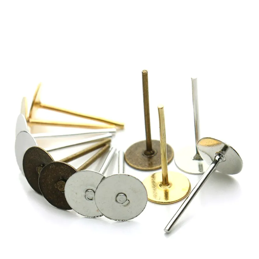 Комплектующие для украшений сделай сам 50100 шт., плоские и круглые гвоздики без декора, фурнитура для сережек