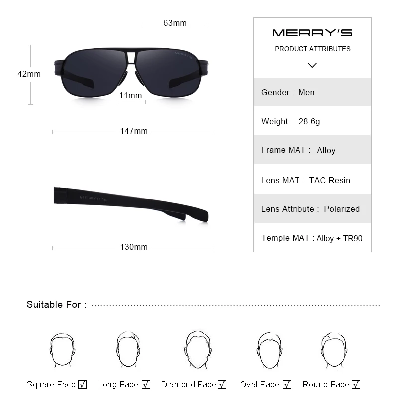 Мужские солнцезащитные очки MERRYS, дизайнерские классические очки ...
