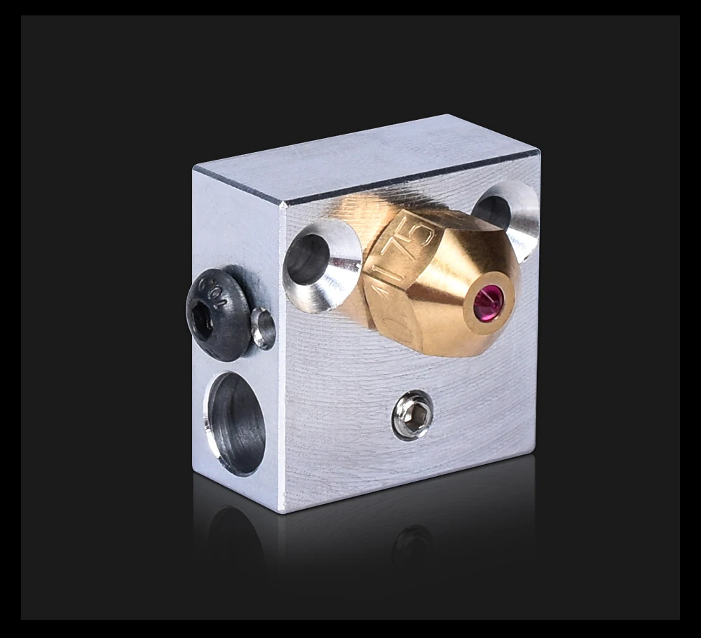 Нормальный хотенд. Есть следы фрезеровки. Резьба в порядке. Винт в комплекте только один - для нагревателя. Силикон положили чёрного цвета.