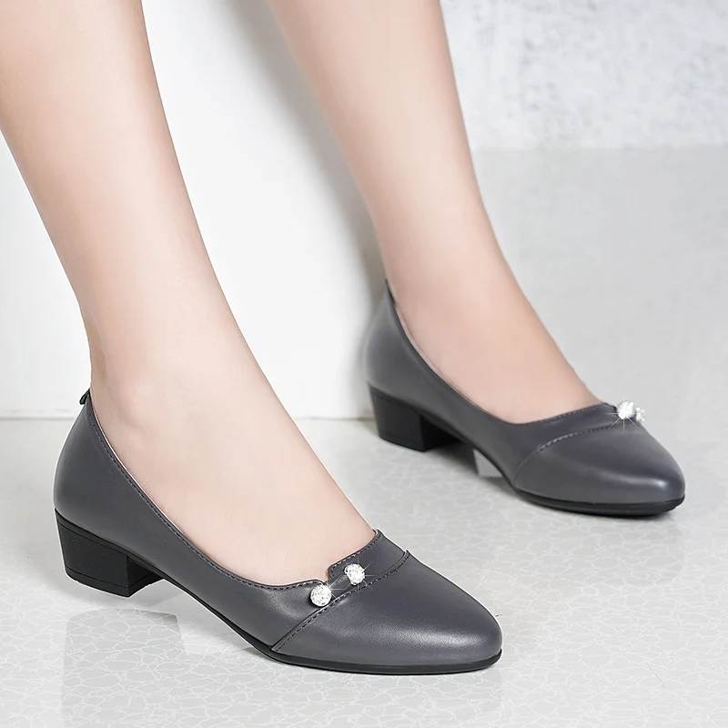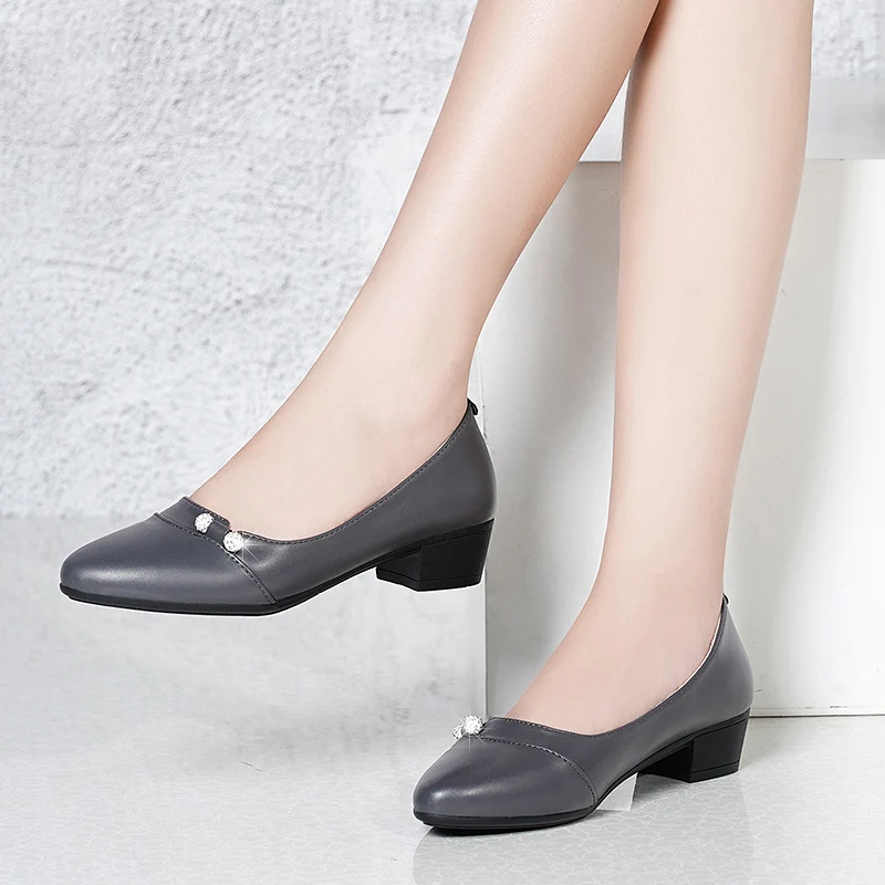 Женские туфли-лодочки, серые модельные туфли из искусственной кожи, офисная обувь на среднем каблуке, стразы, слипоны, N7793