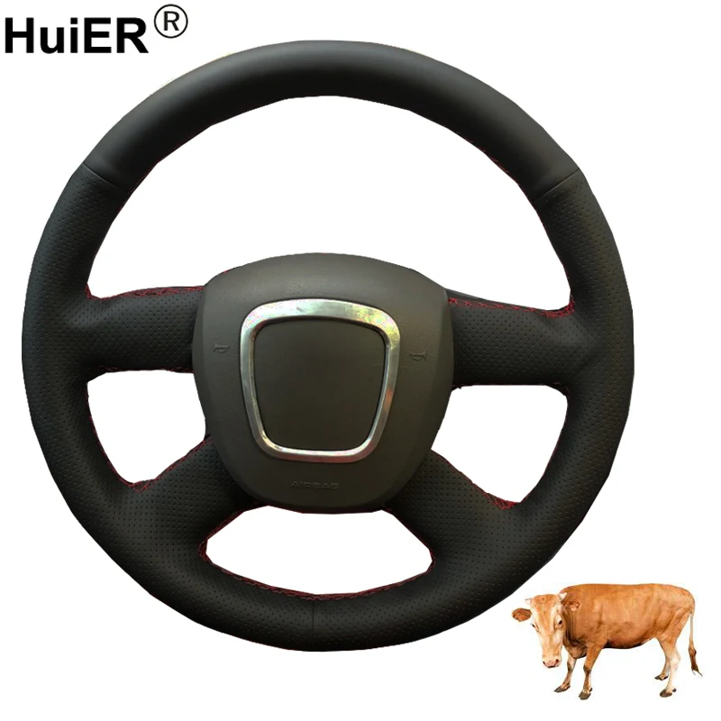 Верхний слой коровьей кожи руль чехол дляAudi A3 2006-2013 / A4 (B8) 2005-2012 / A6 (C6) 2005-2011 / Q5 2009-2012 / Q7 2007-2011 (без многофункциональной кнопки). Если товар не из коровьей кожи, наша компания полностью вернет деньги.