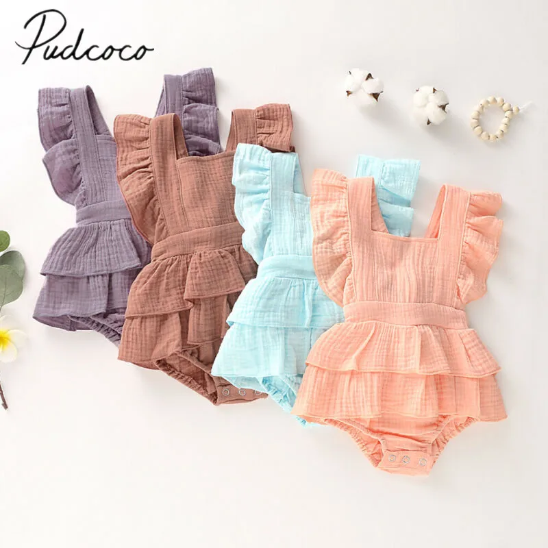 2019, летняя одежда для новорожденных, одежда для маленьких девочек, боди без рукавов с оборками, многослойный комбинезон из искусственной кожи, комбинезоны, наряды