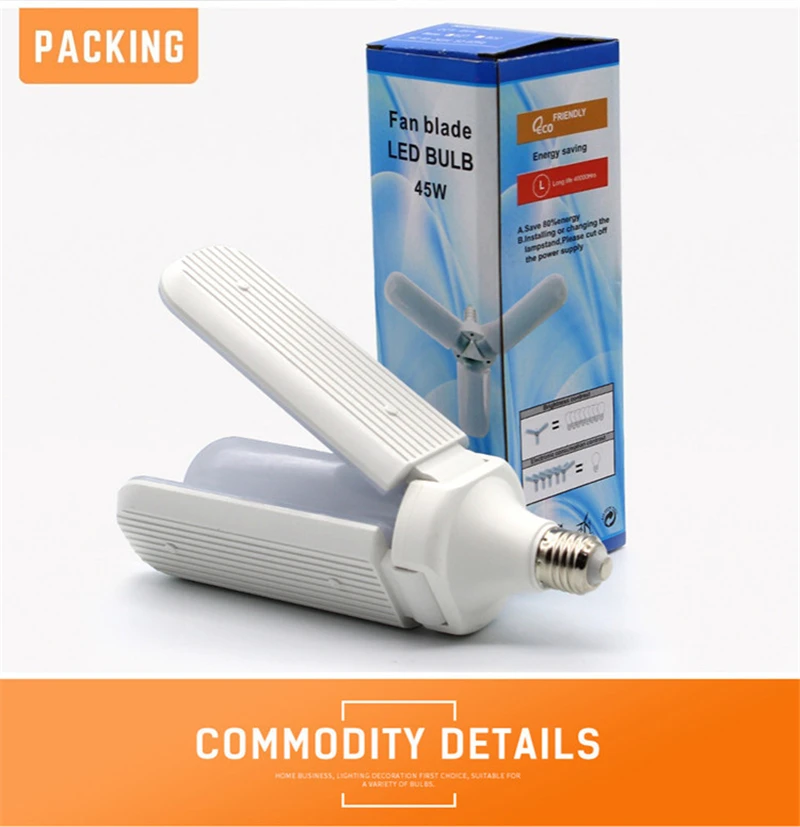 Сверхъяркая Складная Светодиодная лампа E27 SMD2835, потолочный светильник с регулируемым углом наклона вентилятора, энергосберегающее освещение для дома, 30 Вт45 Вт