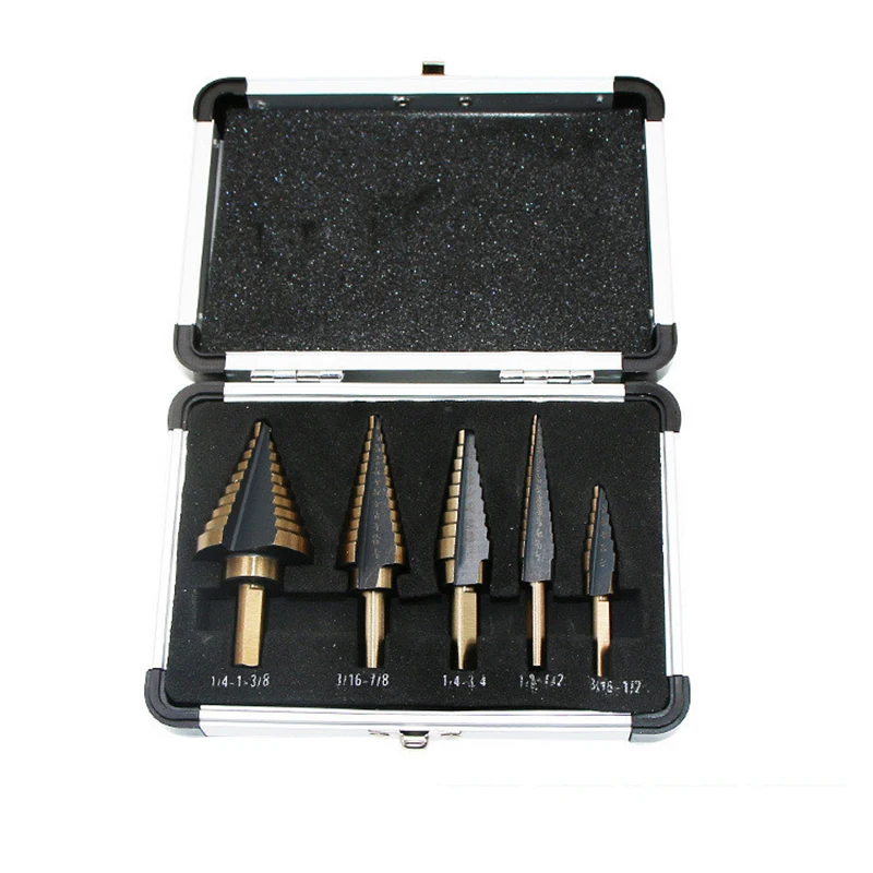 Набор ступенчатых Сверл из быстрорежущей стали с кобальтом, 5 шт.компл., 50 размеров, с алюминиевым чехлом