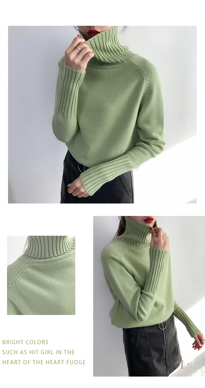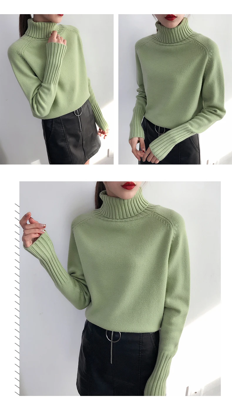 Свитер женский зимний, вязаный, с высоким воротом, Осень-зима 2021