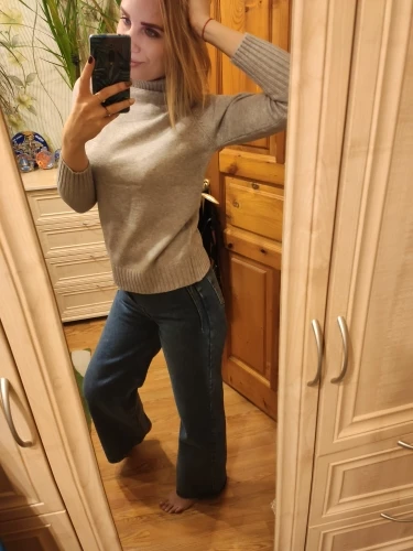 Отвратительная свитра. Размер не соответствует совсем. Выглядит как застиранный , закатаный. Такое ощущение что его кто то долго носил и стирал не правильно. Ге рекомендую заказывать. Зря потраченные деньги.