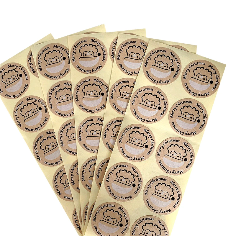 100 шт.лот, винтажная, Рождественская, Санта Клаус, круглая, крафт-печать, наклейка для изделий ручной работы, этикетка