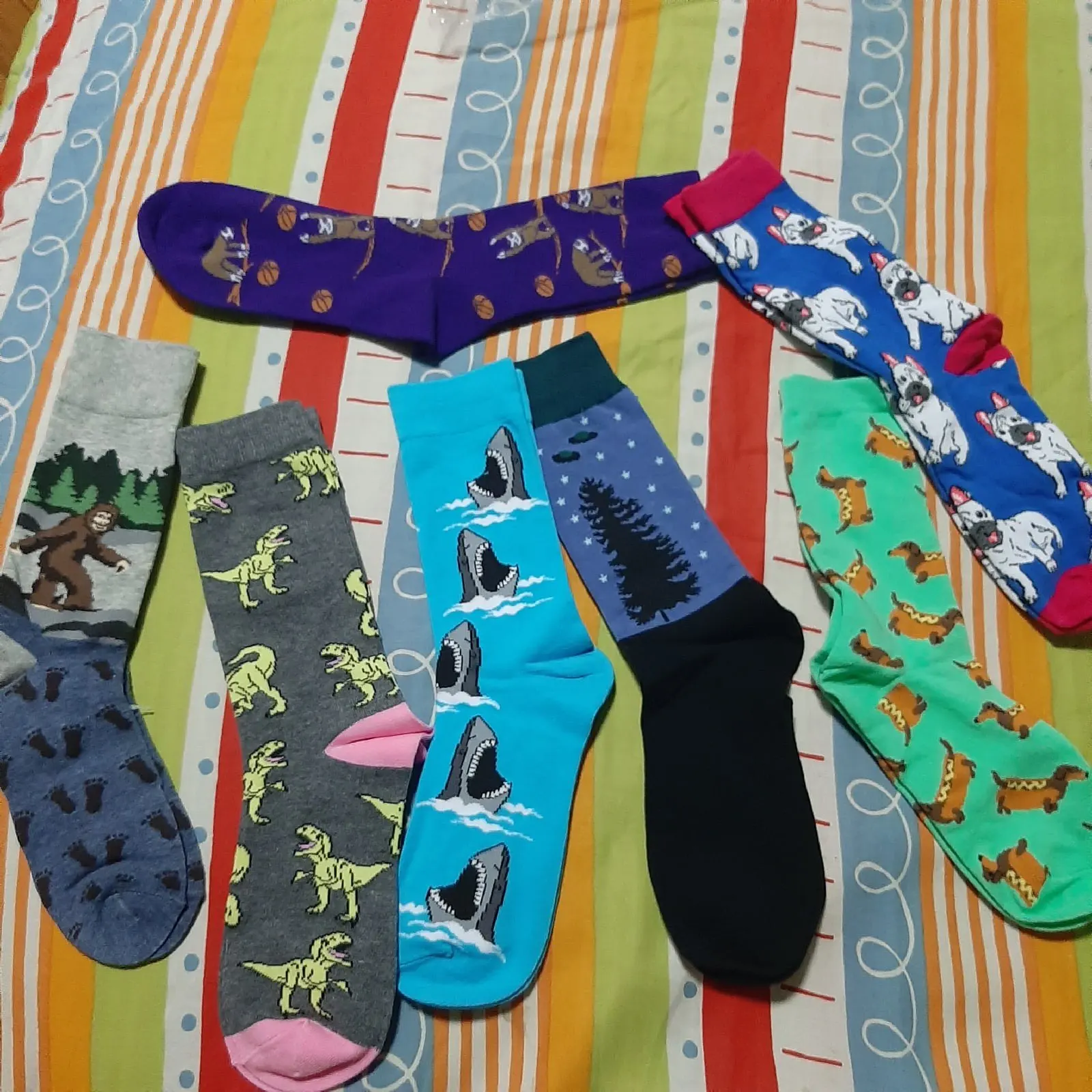 Заказ шёл долго почти 3 месяца в Москву... я уже мысленно с ним попрощалась, думала потерялся(( Ан нет, пришёл и даже срок защиты не успел закончиться))) качество на вид хорошее, яркие, забавные. Носки с бульдогами показались мне самыми большими. Чуть позже скажу, как ведёт себя ткань после стирки. Продавец доброжелательный, на контакт пошёл сразу, спасибо!