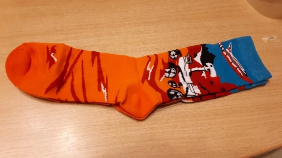 Настолько хорошие носки, ниточки не торчат, яркие, интересные, качественные и безумные, мне они так же нравятся, но, как и всегда, это моему другу на новый год, ах до, Дофи, ему точно нравится, уже готов примерить, а нет, извини, тебе Луффи должен подарить. Спасибо большое продавцу за такую быструю доставку, серьёзно, это один из фаворитов в заказанных мной носков
