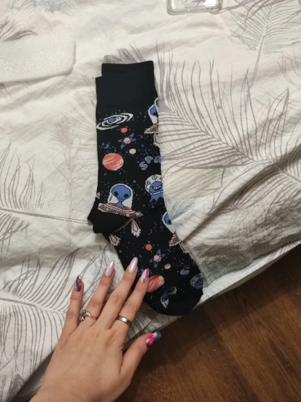 Товар пришёл при ускоренной доставке примерно за три недели. С продавцом не общалась, так как не было необходимости. Но вот прислали совсем другой товар. Вместо мужских носков с космосом, женские носки с котиками. Сразу открыла спор, продавец в этот же день вернул деньги.