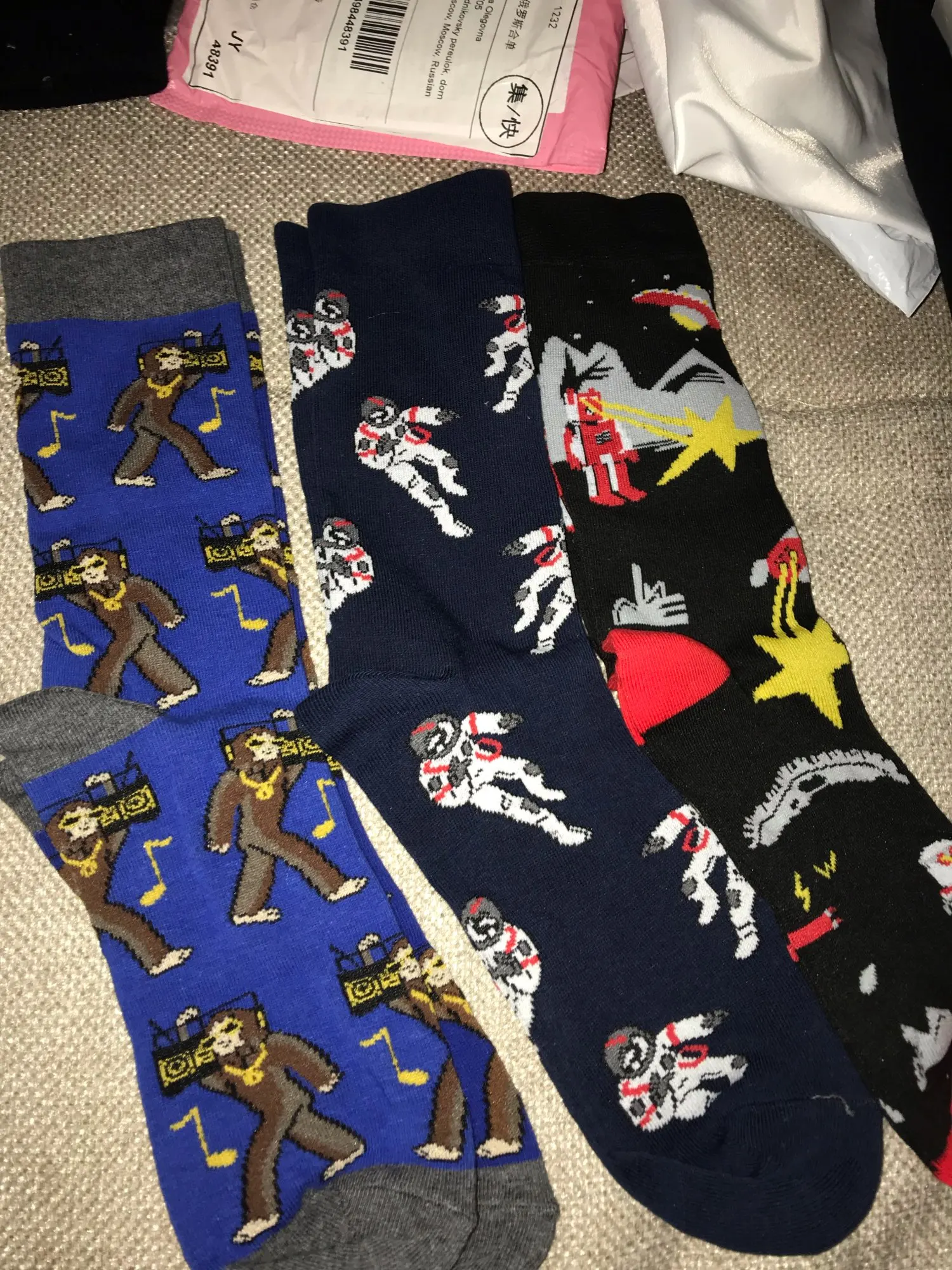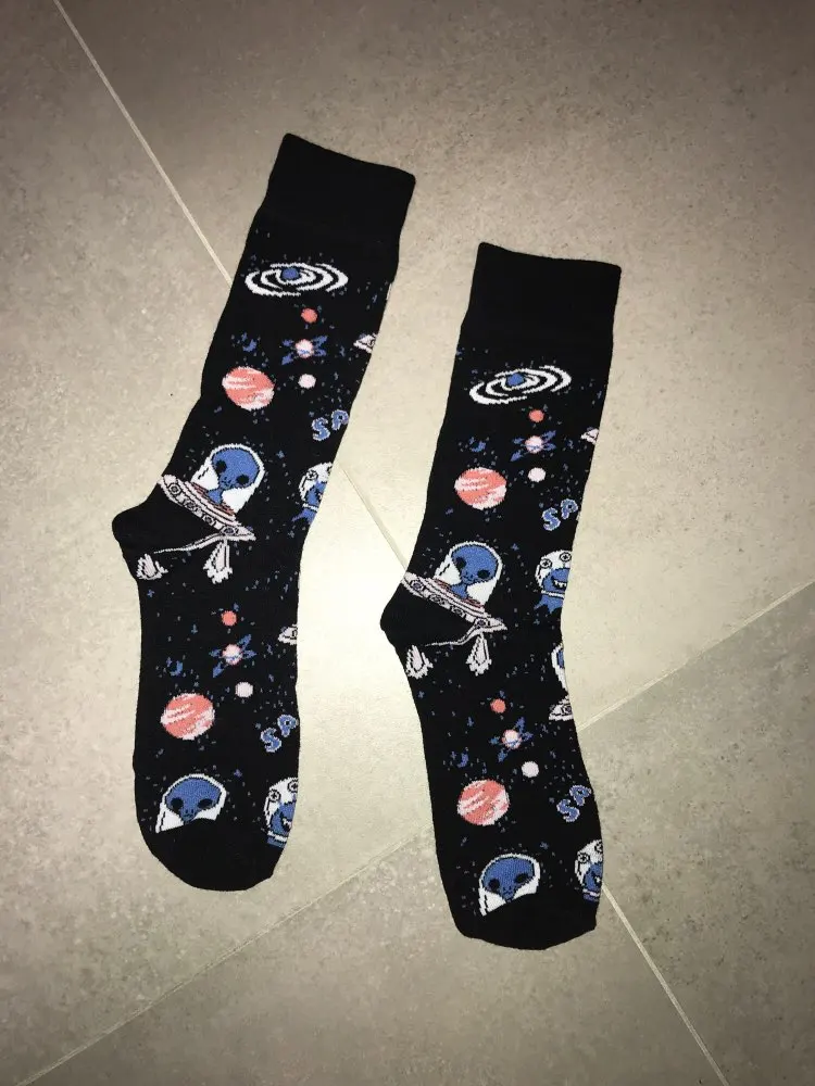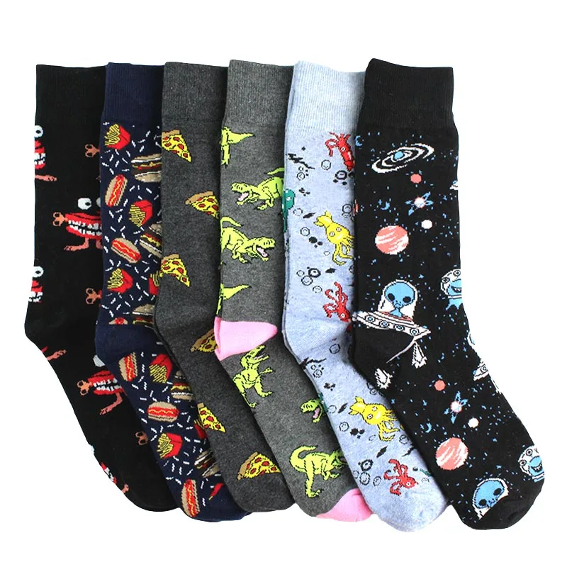Носки мужские, из забавные носки для животных хлопка, с изображением еды, пришельцев, планет