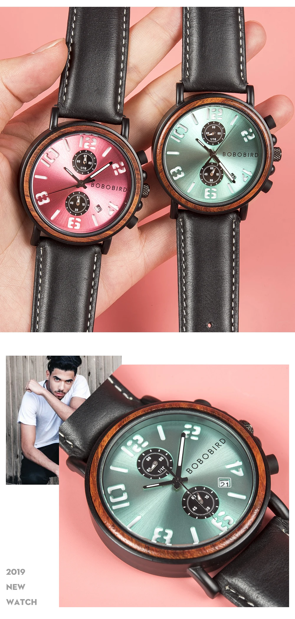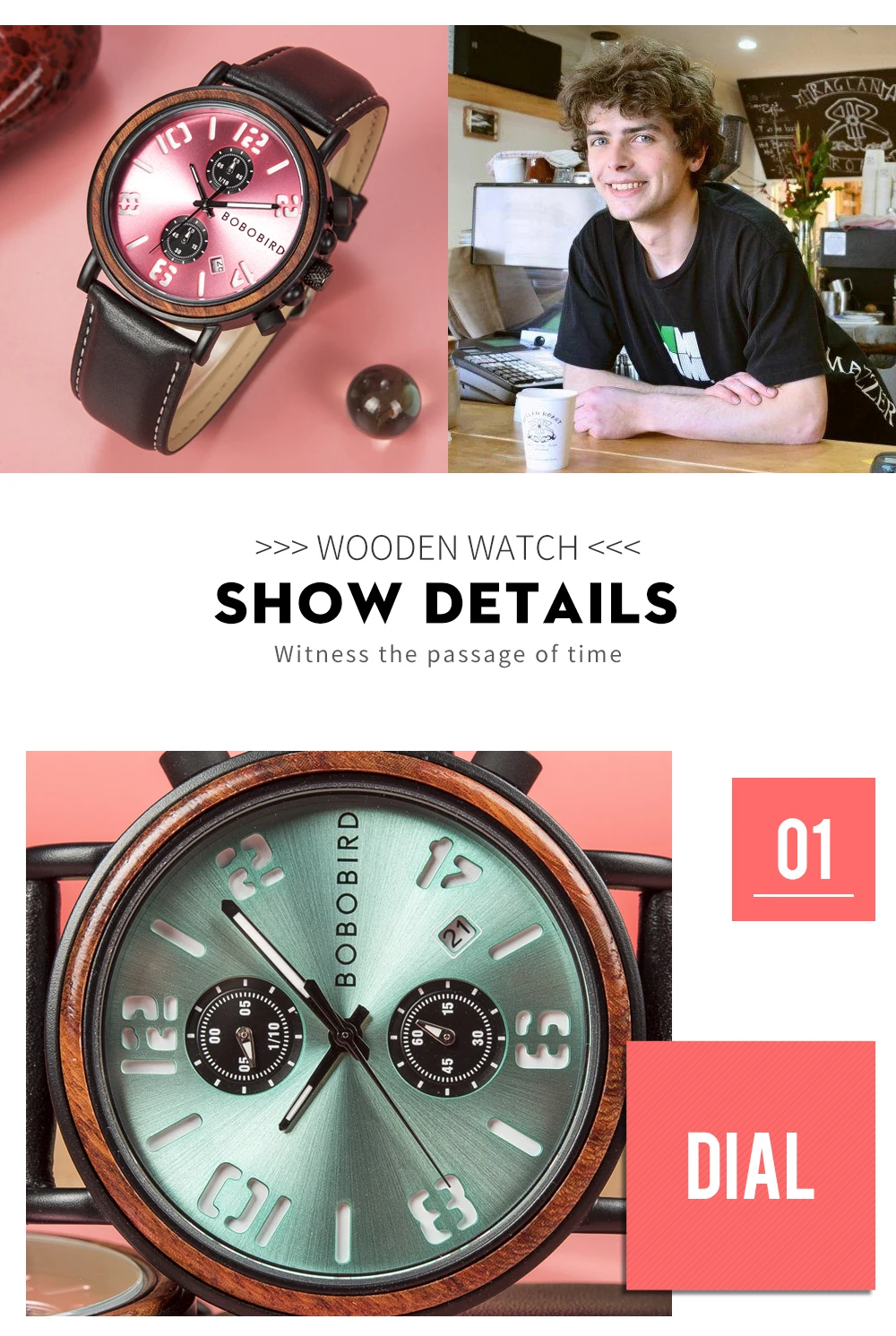 BOBO BIRD деревянные часы с гравировкой сзади отображение даты из натуральной кожи ремешок мужские часы дропшиппинг 2019 Подарочная коробка erkek kol saati
