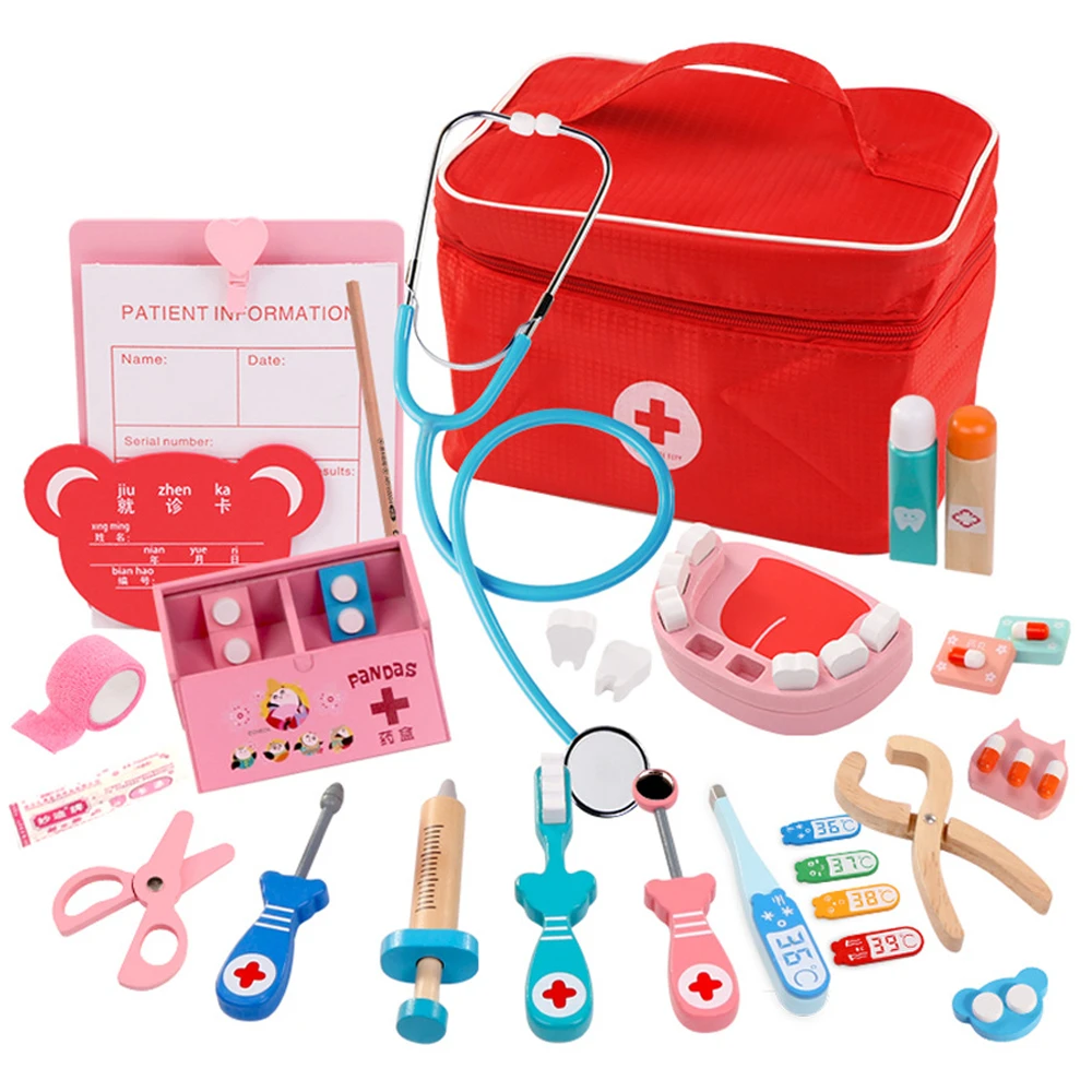 Детские деревянные игрушки, ролевой Набор доктора, портативный деревянный медицинский набор, набор врача-стоматолога, коробка для лекарств, ролевые игры, игрушки для детей
