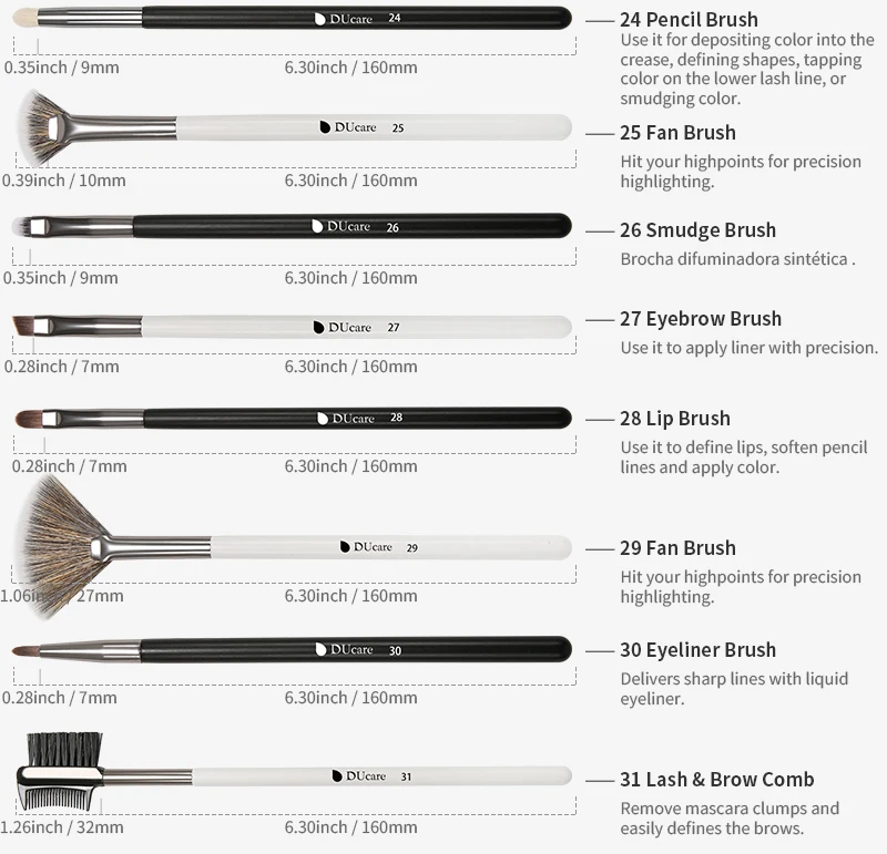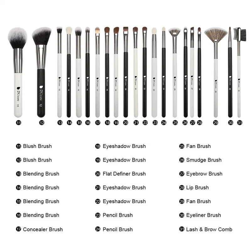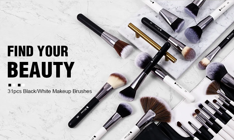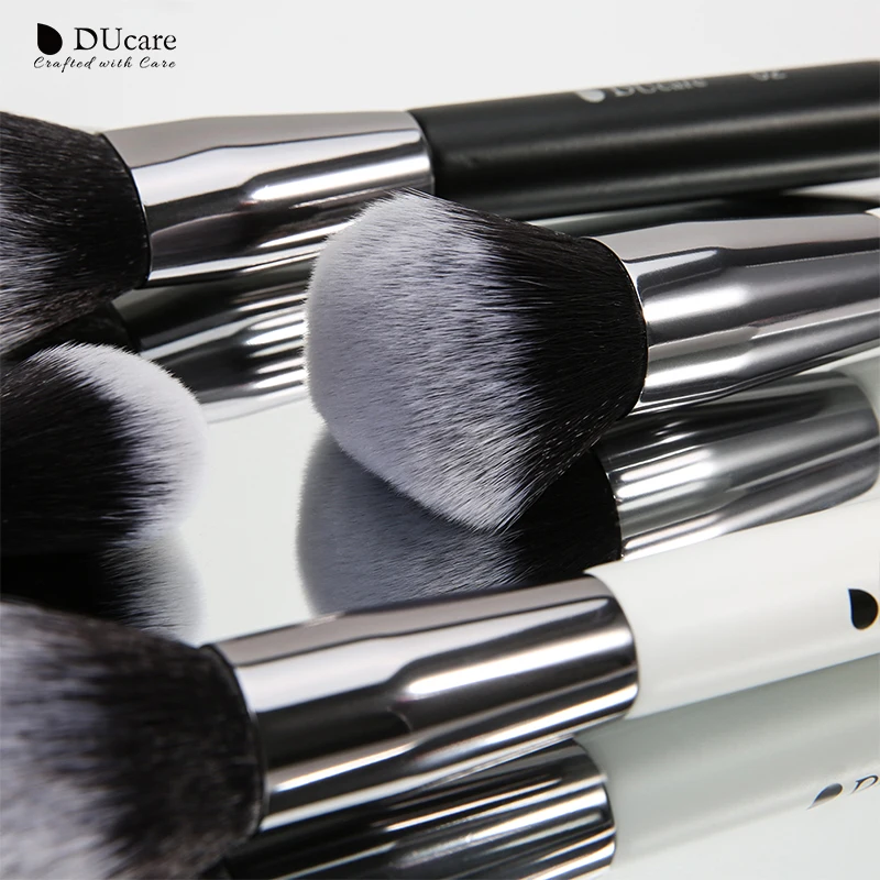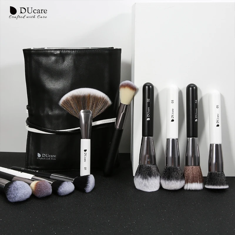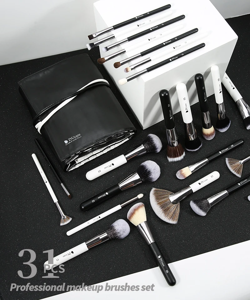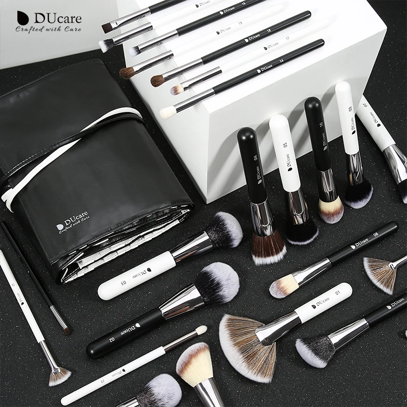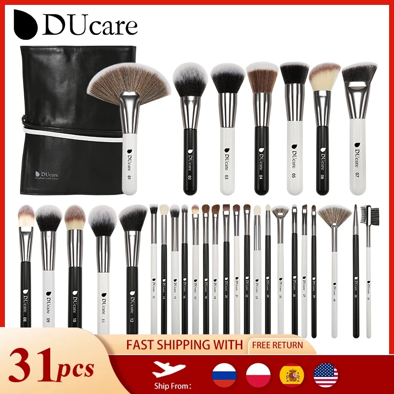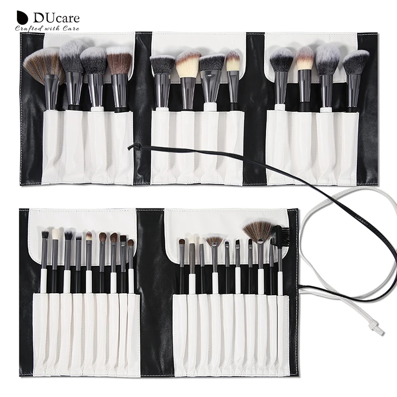 DUcare черныебелые Профессиональные кисти для макияжа с сумкой натуральные козья шерсть основа порошок консилер контур глаз Смешивание 31 шт