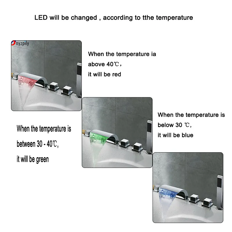 Смеситель для ванной комнаты Onyzpily со светодиодным Изливом, 5 шт., Смесители ORB, хромированный смеситель для душа для ванной комнаты с ручным душем из АБС-пластика