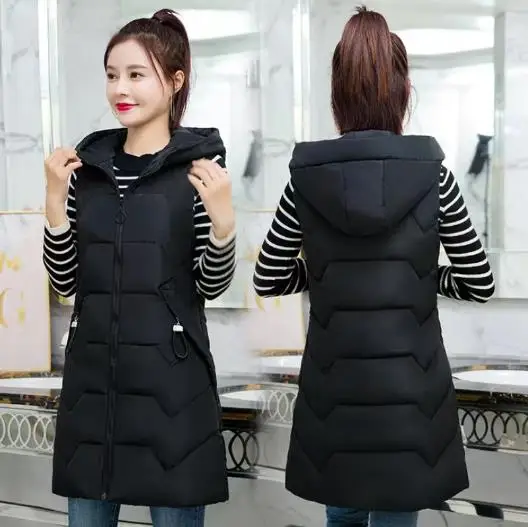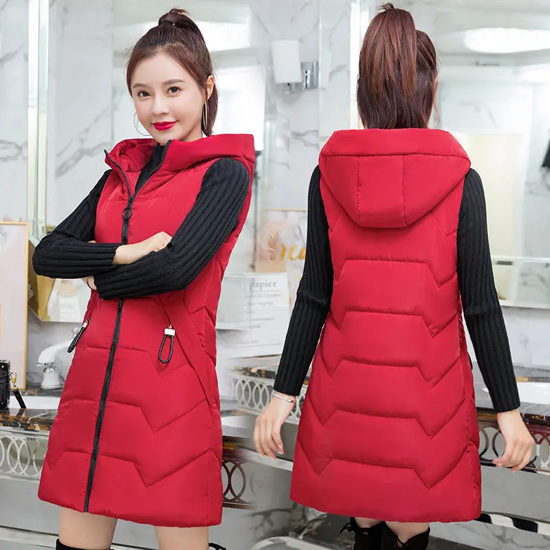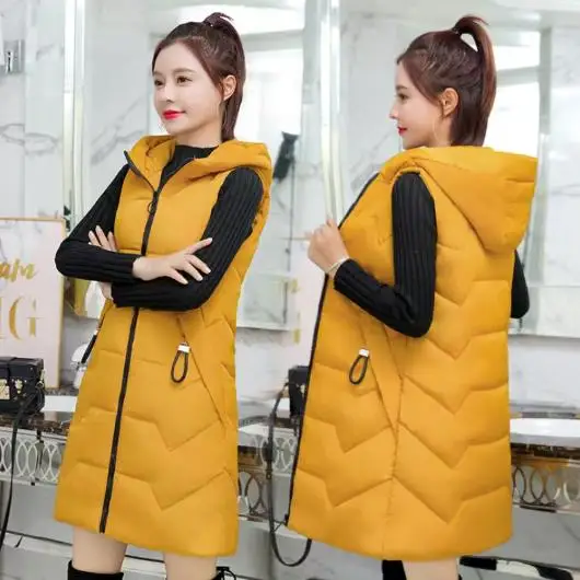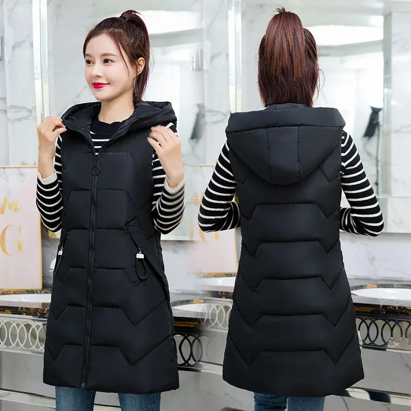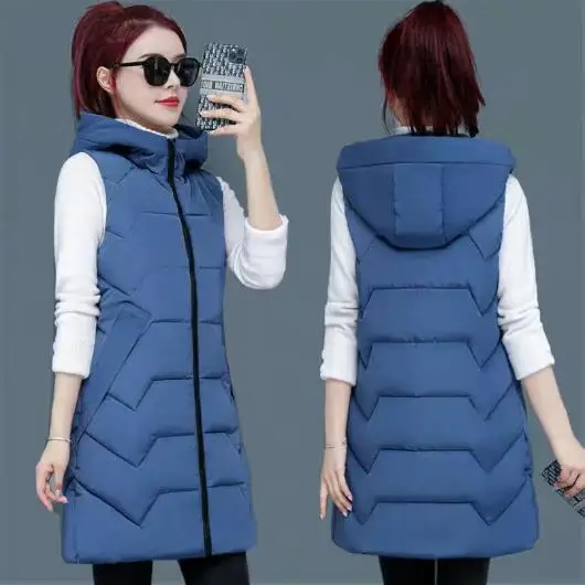 Женский зимний длинный жилет без рукавов, утепленный жилет с хлопковой подкладкой и большими карманами, kz038, 2021