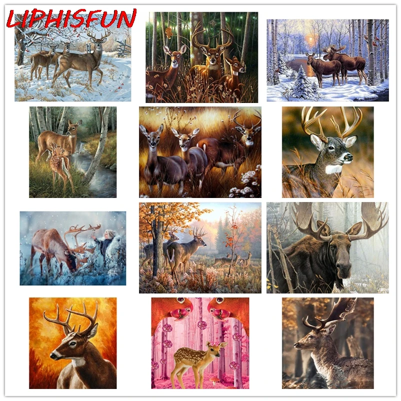 Алмазная картина 5D "сделай сам", лес, дикие животные, пейзаж, олень, квадратные стразы, вышивка крестиком, домашний декор