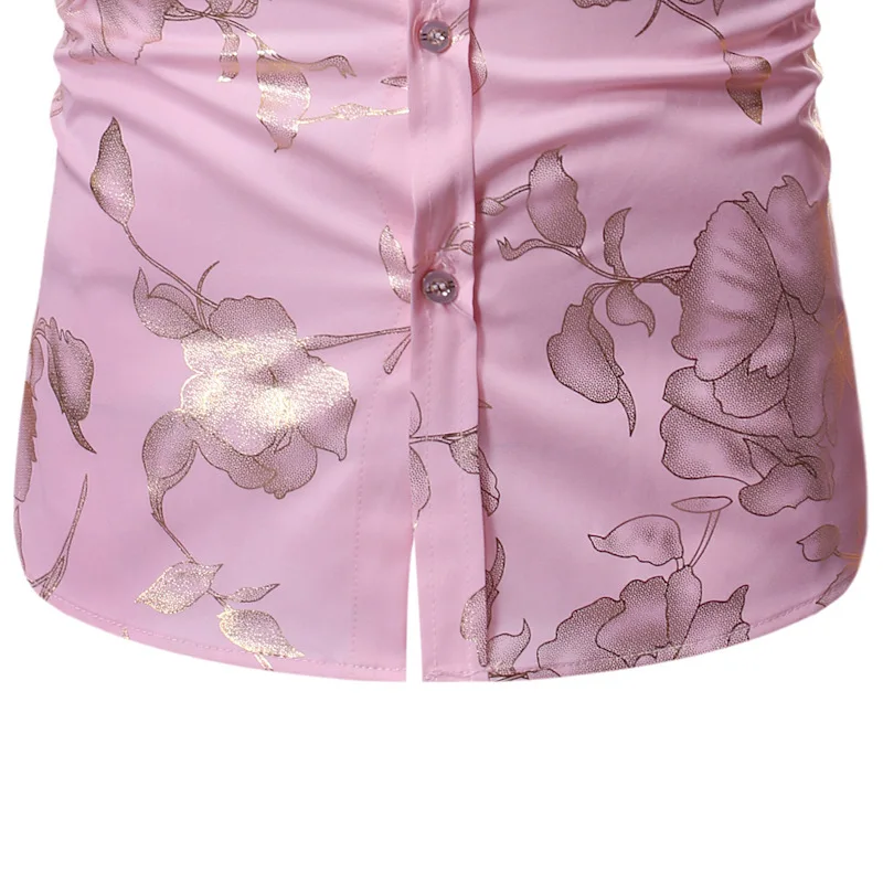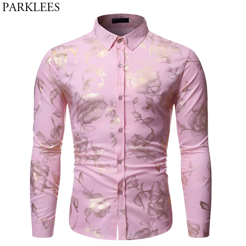 Рисунок Золотая Роза Мужская розовая рубашка 2019 Стильная приталенная Мужская классическая рубашка с длинным рукавом для вечерние ринки свадьбы клуба мужская рубашка