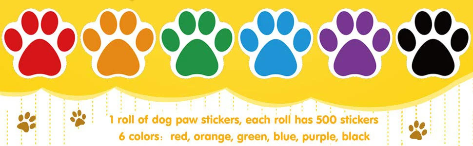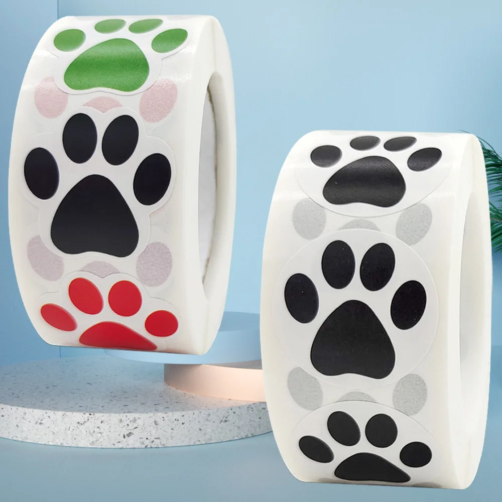 500 шт., 6 цветов, цветные наклейки для собак с принтом лап, для св...