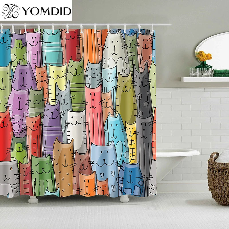 Занавеска для душа YOMDID, из полиэстера, водонепроницаемая, с рисунком кошки, для ванной, рождественский подарок