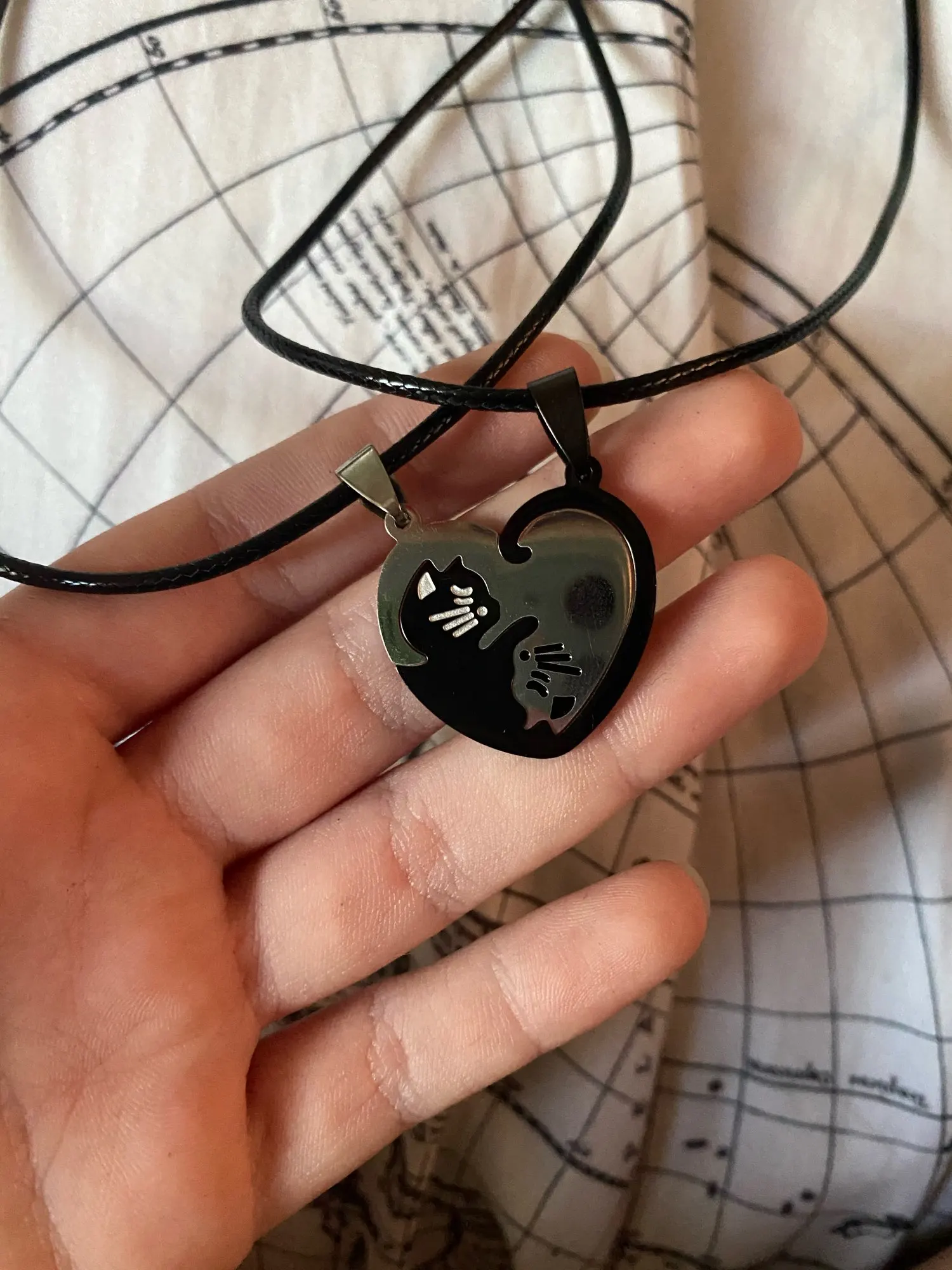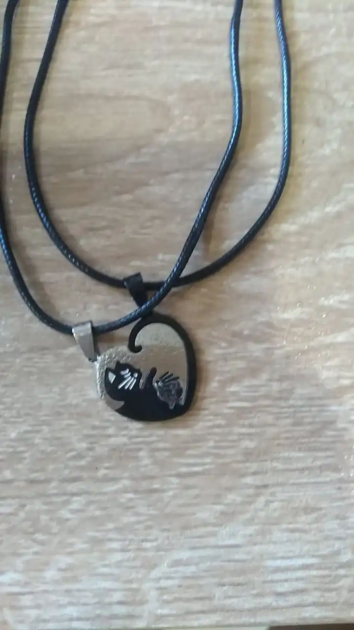 Ожерелье с подвеской в виде кошки черного и белого цвета для влюбле...