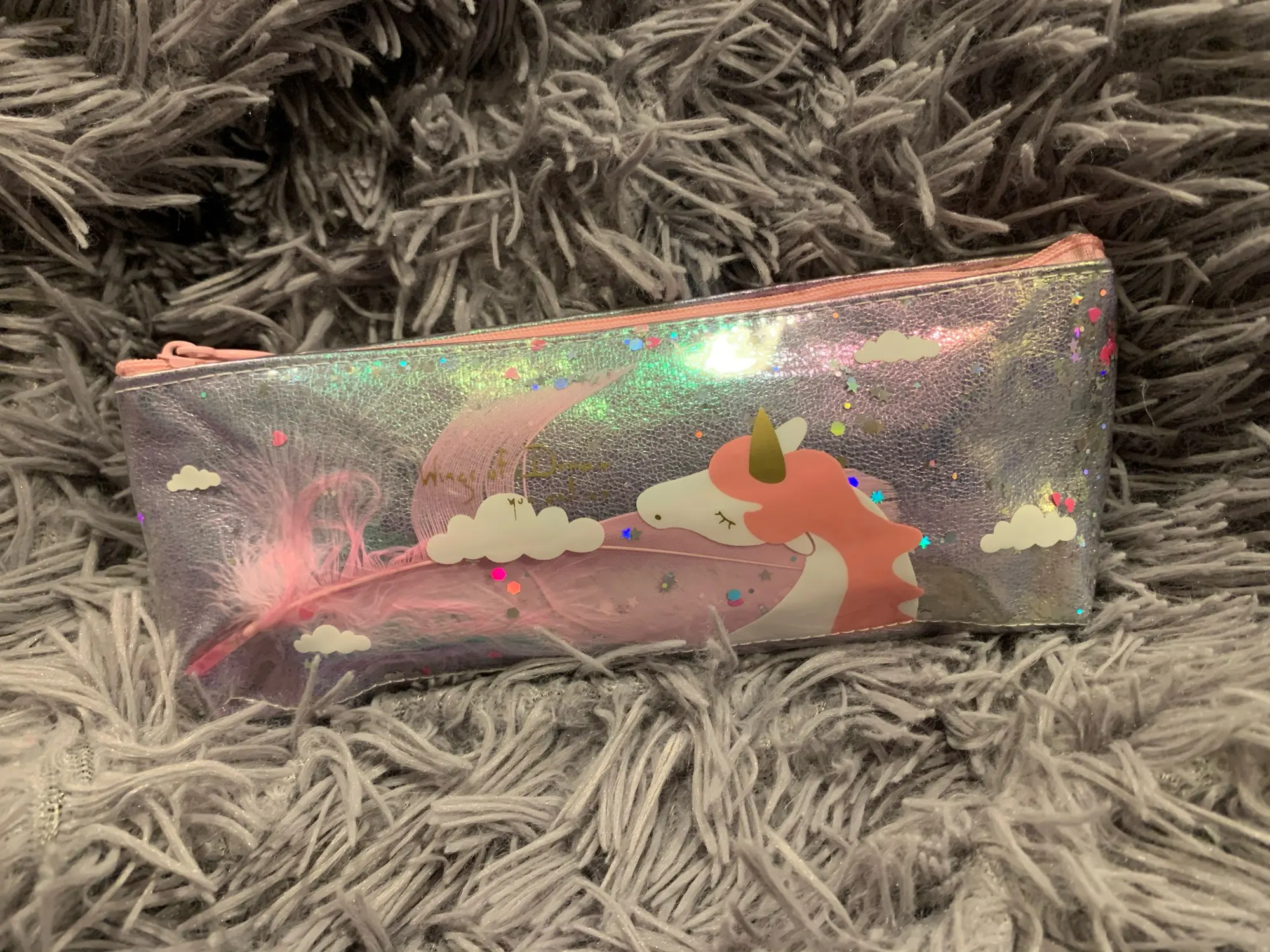Пенал для карандашей, из ПВХ, с единорогом, цветком, блестками