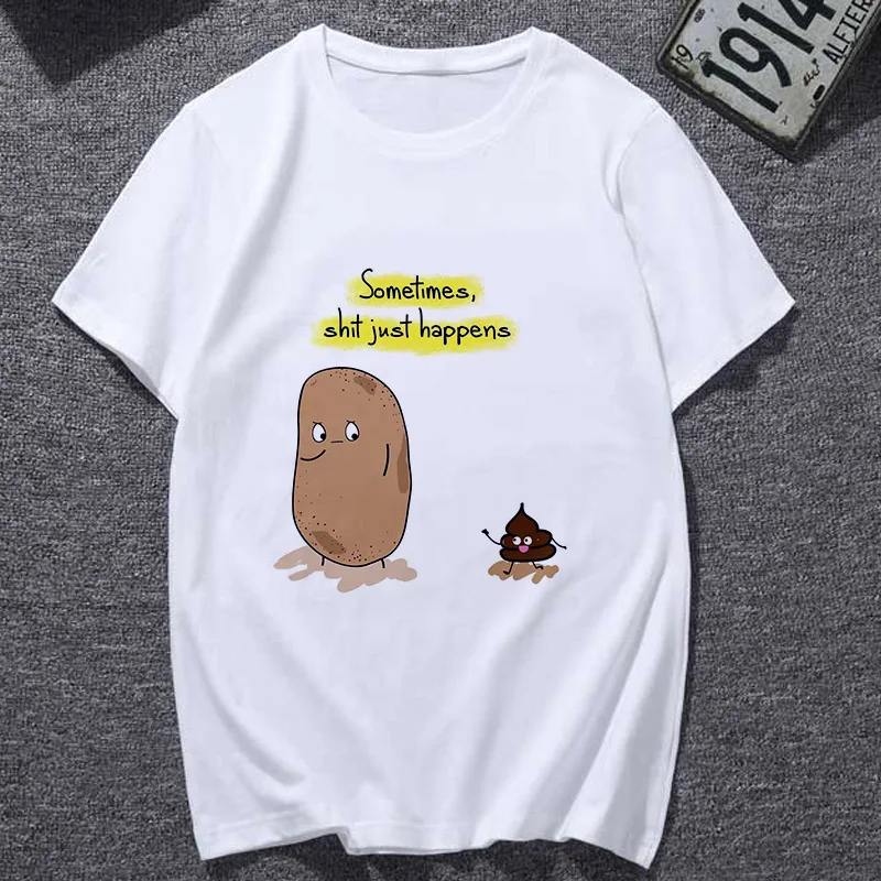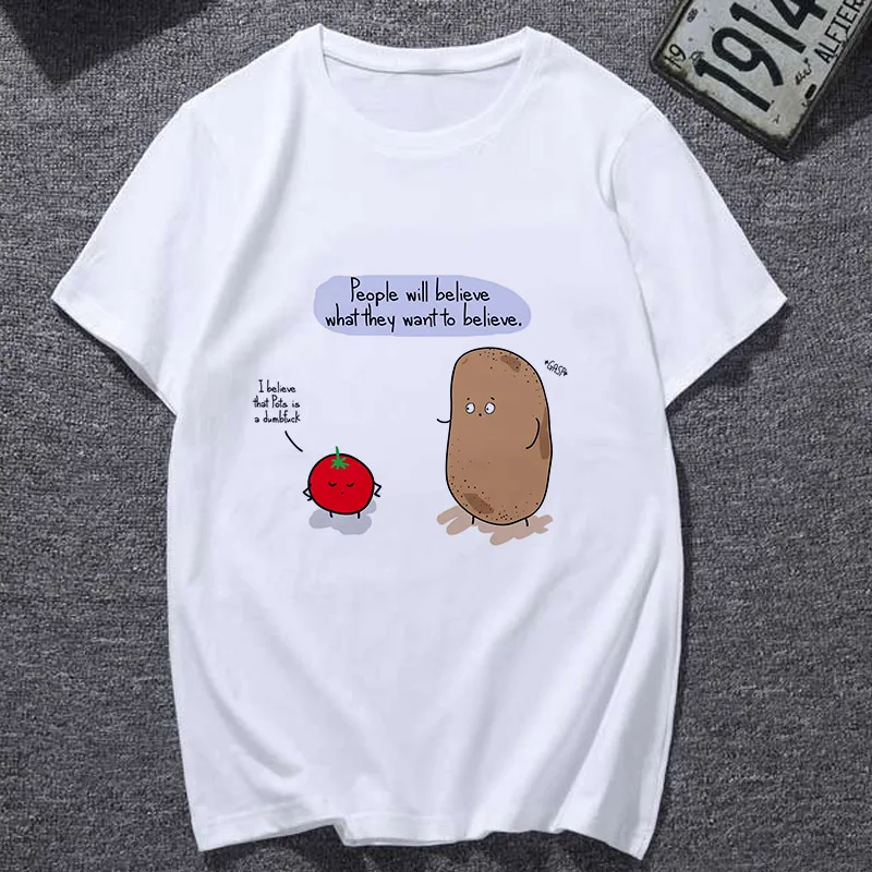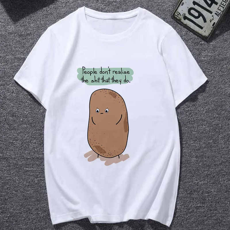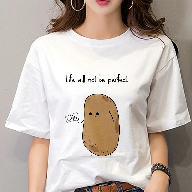 Новая летняя Милая футболка женская мода картофель философия Harajuku короткий рукав Футболка белая тонкая секция футболка Топы Одежда