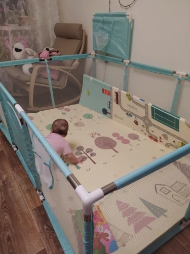Манеж отличный! Я приятно удивлен! Я думаю, что это будет очень полезно. Моей дочери понравилось с первого момента. Продавец добрый и ответил на все мои вопросы. Доставка была очень быстрой, курьером до дома. Сборка легкая и быстрая! Спасибо! Вы можете доверять продавцу!