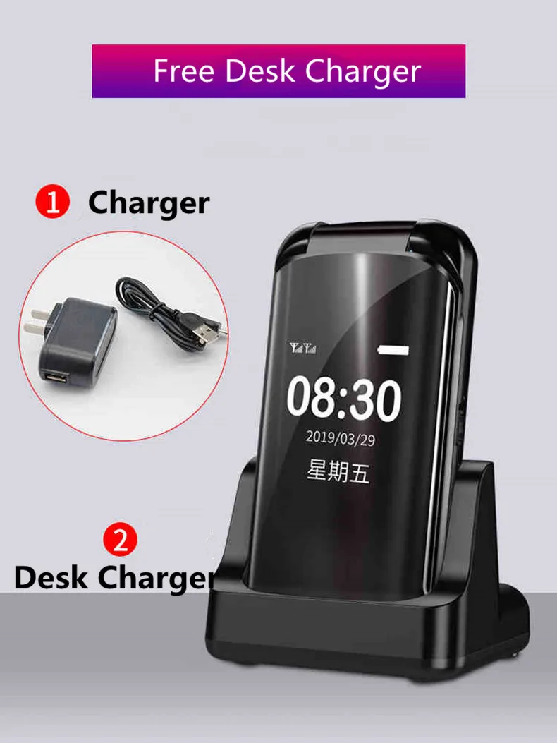 Откидной многофункциональный мобильный телефон Z9 с двойным дисплеем, две sim-карты, большой ключ, большой шрифт, сильная вибрация, мобильный телефон, подарок, настольное зарядное устройство